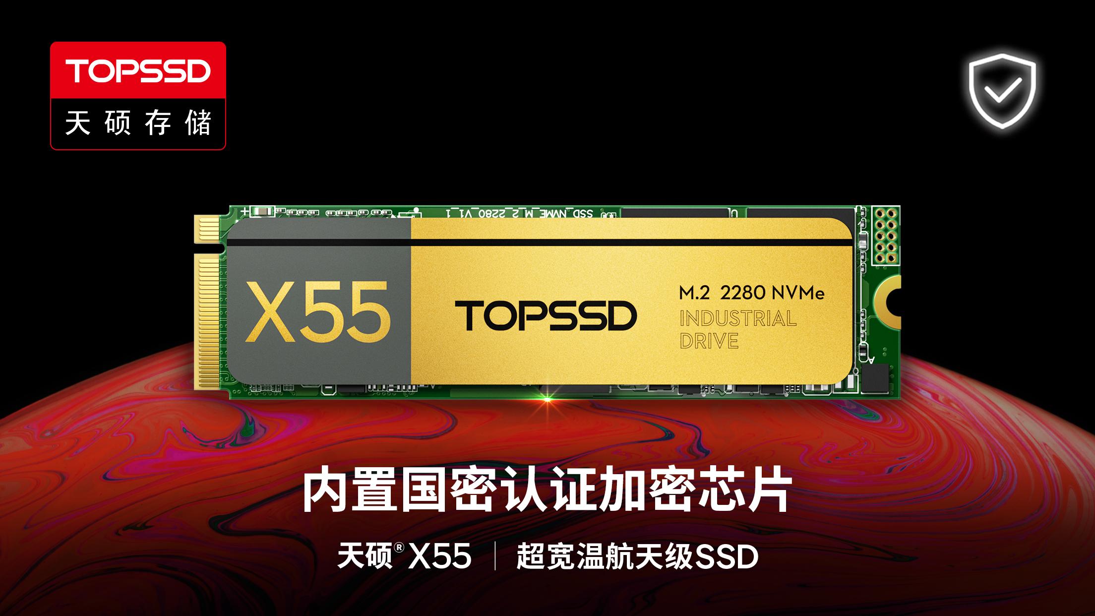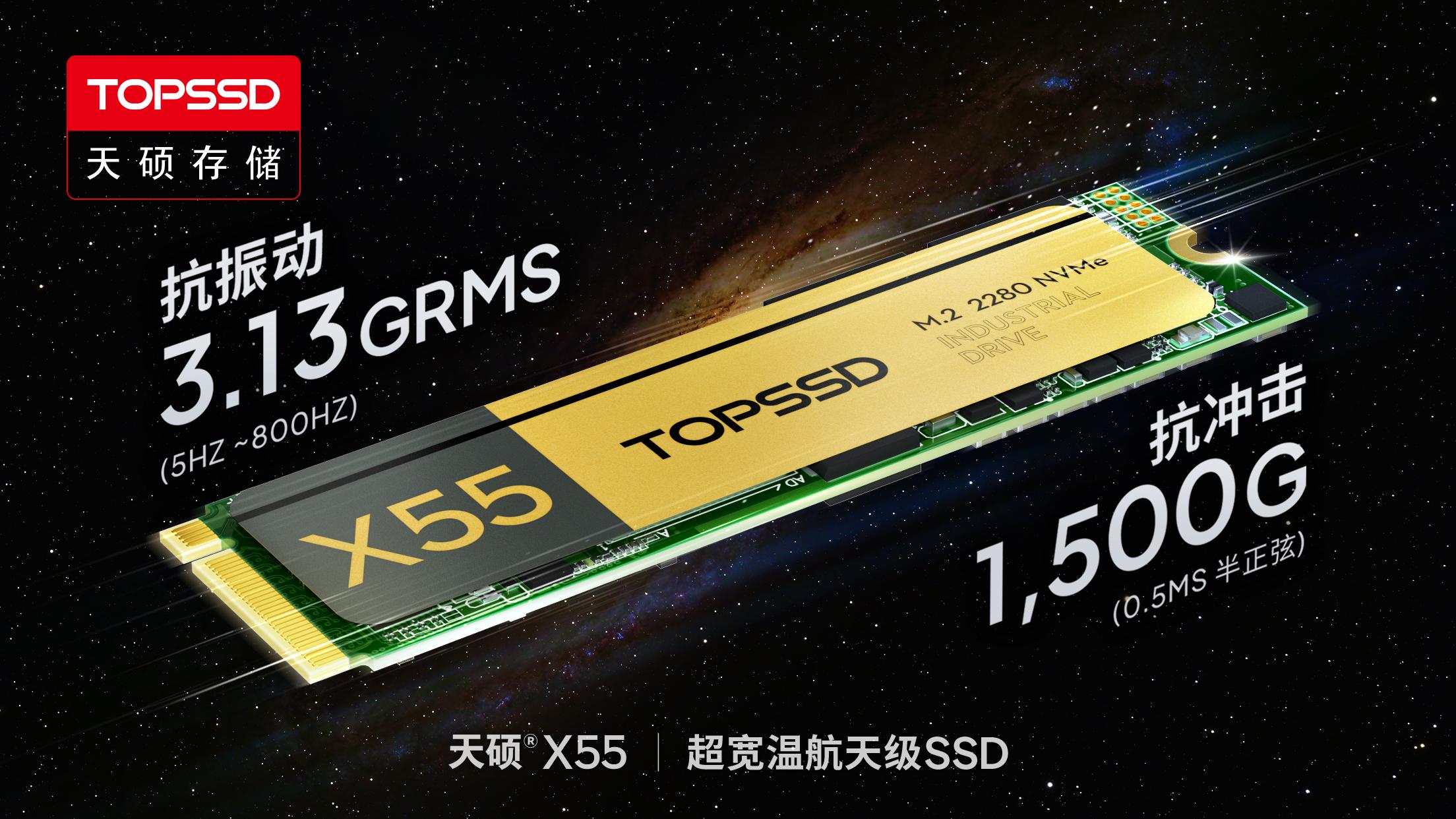 主营产品方面,天硕的X55系列固态硬盘表现出色。在产品质量上,它采用 -55℃~85℃ 超宽温设计,在极寒、高温、真空、强辐射等严苛环境,可保持稳定运行,符合多项军用与标准(GJB150 系列、GB/T 36355、GB 4943 等)认证要求。其 TBW 高达 40000TB,耐久度远超商用产品数量级;MTBF 达 200 万小时,提供长生命周期与高可用性保障,非常适合航天、能源、电力、特种装备等高强度写入场景。自研 4K LDPC 算法让 SSD 拥有超强纠错能力,UBER 低至 10^-17 等级,长期数据保存能力显著优于一般工业品。还搭载多重数据保护体系,确保设备长期运行无意外,具备抗辐照能力和多级温控保护,支持定制固件与远程固件升级。