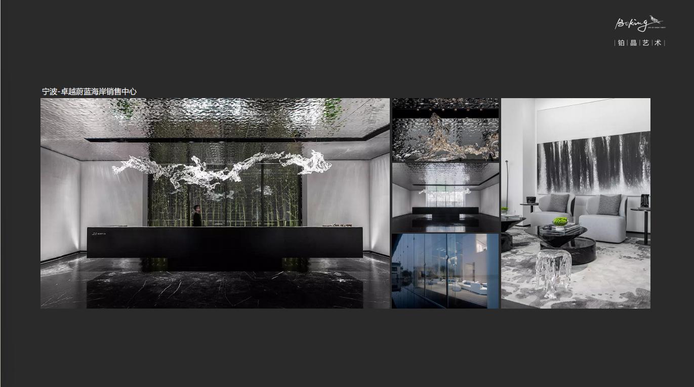 在产品方面,铂晶艺术以水晶重构东方美学,创作了太湖石系列、上善若水系列两大主要艺术作品系列。同时,通过对艺术作品的演绎,开发出一系列具有使用功能的艺术品,如网红作品《瑞水之镜》《水隐》(水滴椅)《玄液》躺椅、《秘漩》茶桌等,深受设计师及对生活美学有较高追求人士的喜爱。其艺术家居的成功,源于创始人吴代杰对艺术与设计边界的探索,也开创了透明艺术家居这一新领域。