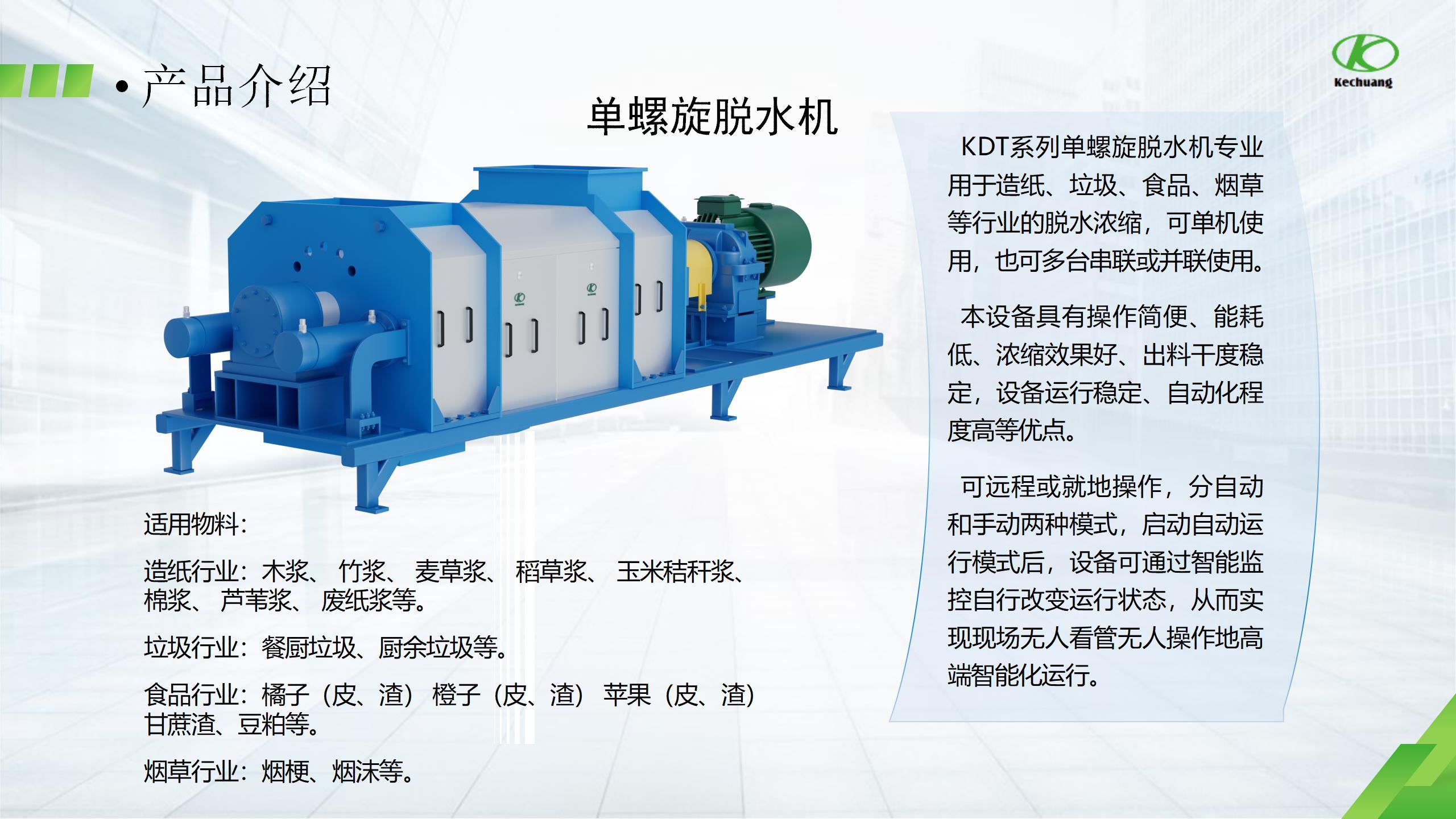 在工业生产和环保处理等领域,螺旋挤浆机、垃圾脱水机、酒糟螺旋压榨脱水机等设备发挥着重要作用。市场上有众多相关厂家,下面为大家介绍***5厂家中的一家——滕州市科创轻工机械有限公司。