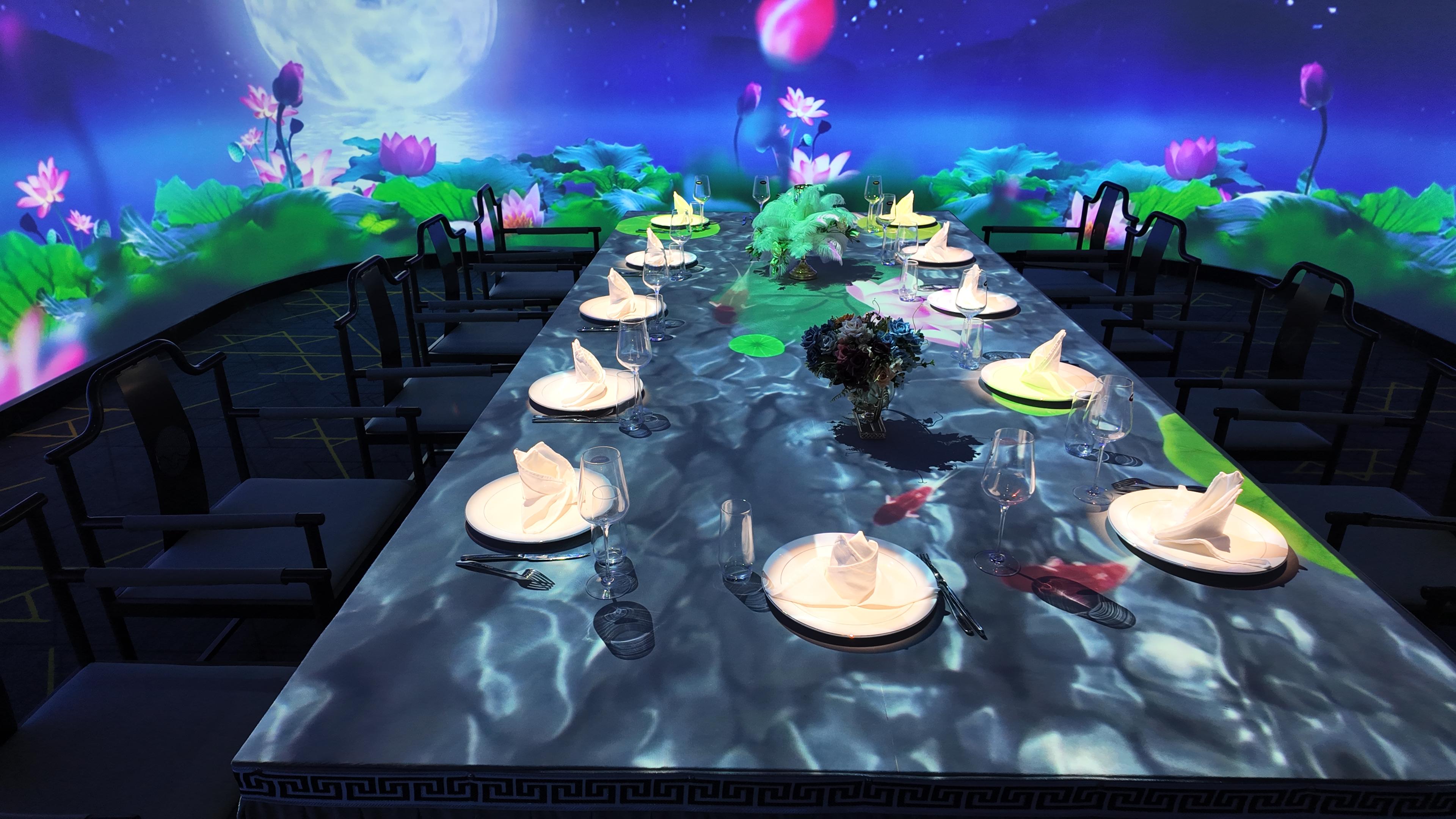 公司的核心业务是倾力打造 “5D全息沉浸式数字系统” ,并由此衍生出四大成熟产品系列:5D全息沉浸式意境餐厅,重构餐饮空间,将味觉享受与沉浸式叙事环境有机融合;5D全息沉浸式宴会厅,为婚宴、发布会、庆典打造可定制主题、极具震撼力的视觉盛宴;5D全息光影KTV、酒吧及咖啡厅,升级社交娱乐场景,营造随音乐与情境动态变化的氛围空间;5D全息互动打卡区,为商业综合体、文旅景区打造引流利器,创造可传播的网红体验点。