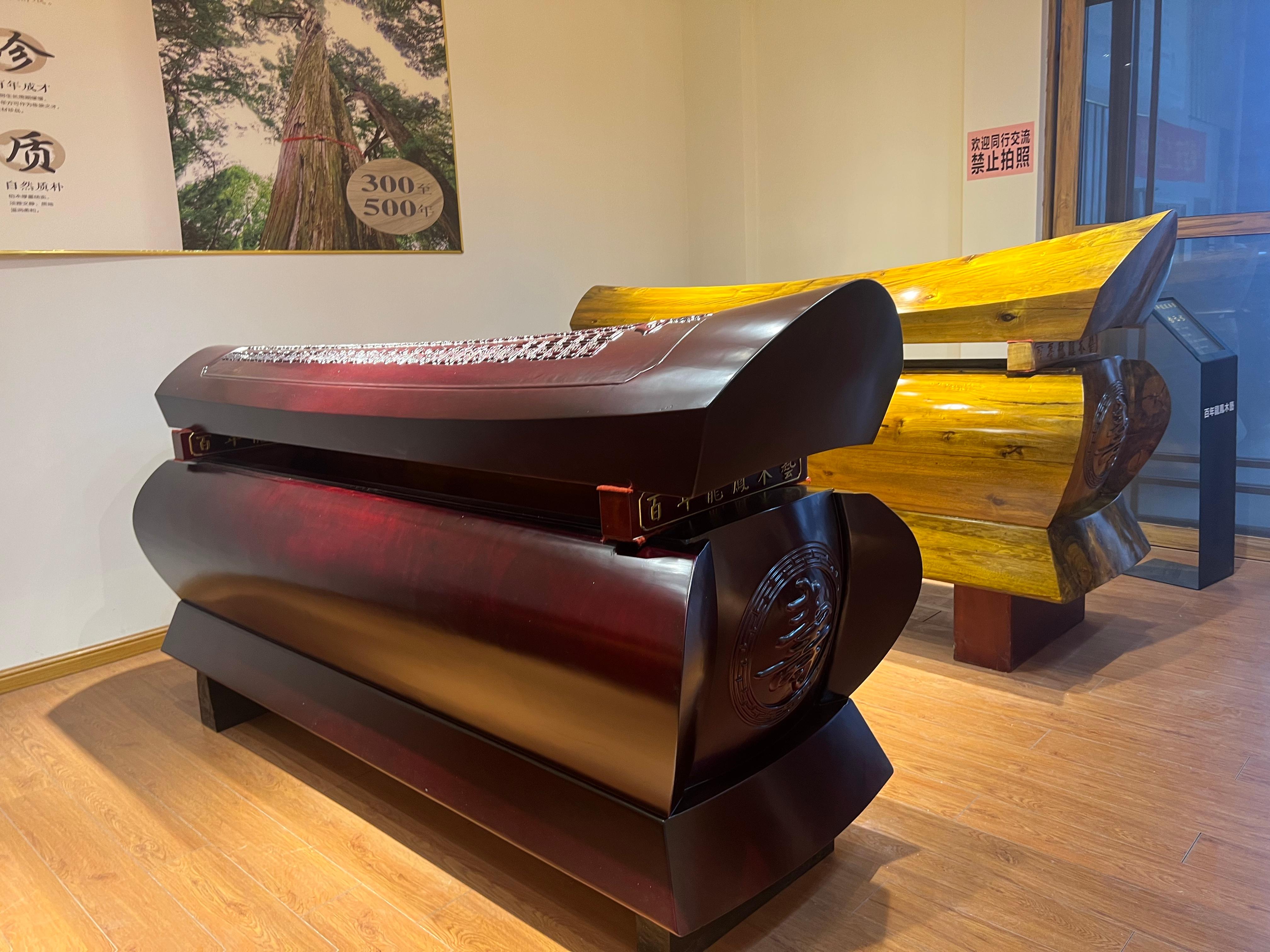 主营产品方面,该公司专注以楠木、柏木、红木、杉木等多种稀有木材为原材料进行寿材定制生产,主营名贵木材寿材定制、棺木制作,主打金丝楠木、楠木、柏木、杉木、红木等材质。其工艺采用传统手工雕刻,古法木作技艺,拥有专业木匠团队。