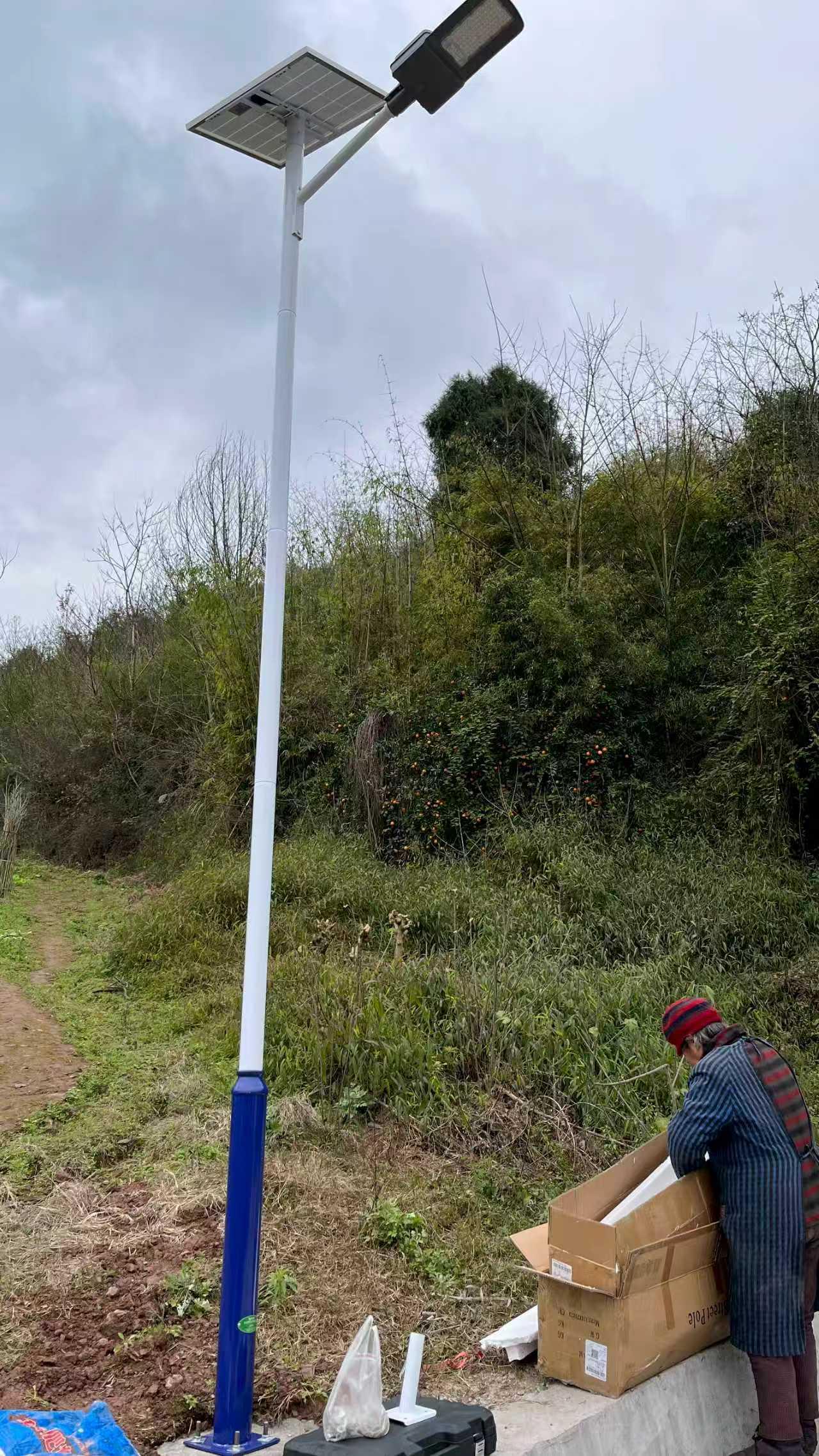 以其标准太阳能路灯为例,质量上,灯杆采用Q235优质钢材,主杆上口径60MM、下口径130MM、壁厚2.3MM,搭配250*250*8MM加厚法兰,结构坚固抗风;灯体选用压铸铝材质,经镀锌+喷塑烤漆双重工艺处理(白+蓝配色),防腐防锈、不易脱落,耐用性极强;配套齐全且优质,含4*M16*180*180*H550规格地笼(固定稳固)和2.5米太阳能专用接头线(抗老化、导电安全),细节彰显高品质。性能上,采用LED高亮光源,搭配3030/5054高亮灯珠与美国普瑞芯片,光效高、发光稳定;配置60 - 90W单/晶硅太阳能板,转化率高,搭配60AH宁德时代3.2V锂电池,储能充足、续航稳定;采用微电脑智能光控+时控设计,无需人工干预,可自动感应光线启停,确保整晚亮灯,高效又省心。