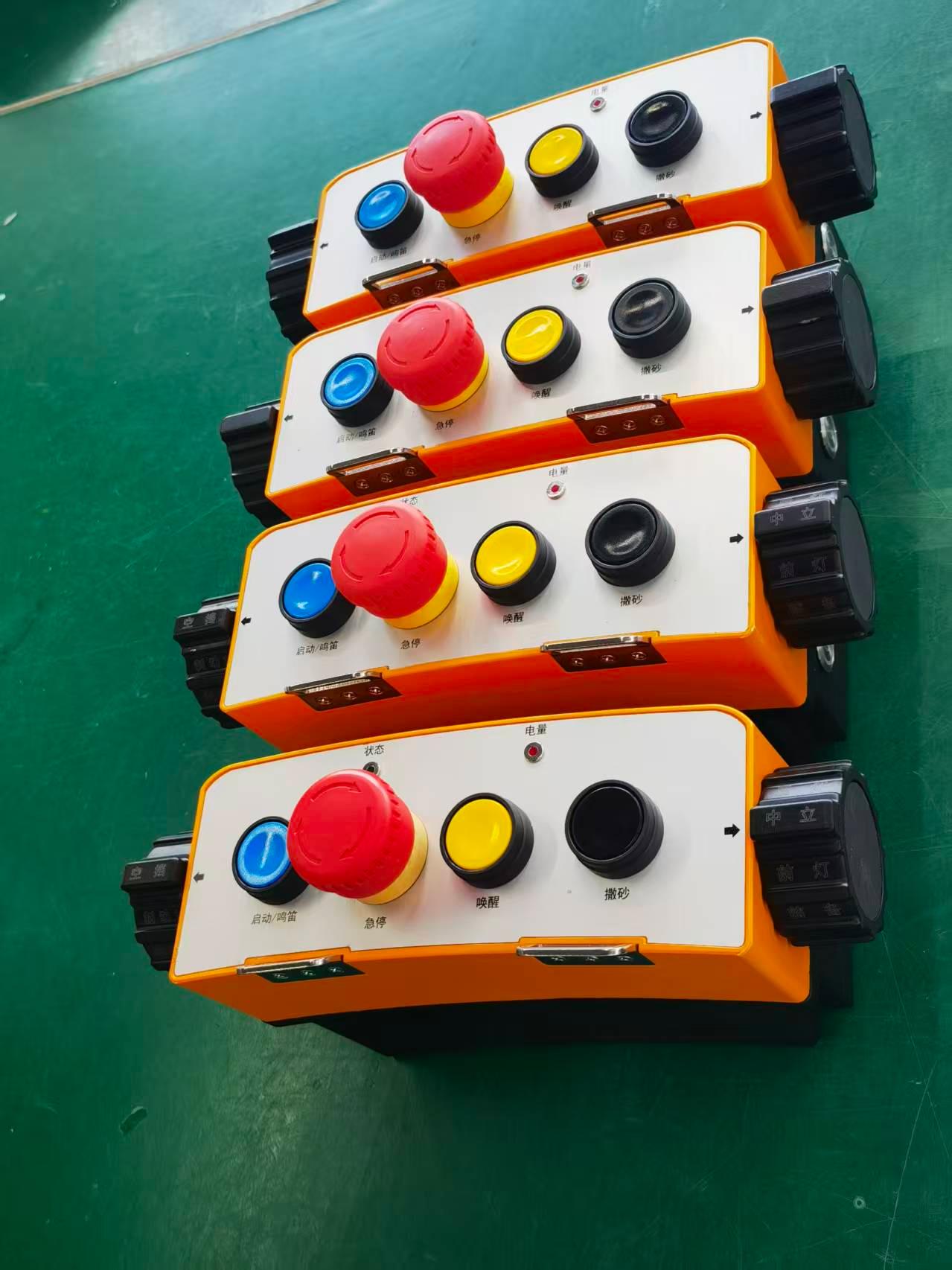 在产品质量和性能方面,奕九科技的遥控器有诸多亮点。在设计上,整机外壳采用高强度工程塑料并结合内部多重支架结构,由内而外契合力学原理,全密封机身,防水防尘耐冲击。机身护栏弧度设计符合人体工学,与手掌贴合,搭配挂式背带使操作便利、稳定。内部隐匿式高增益天线不易受外力损坏。遥控信号响应为毫秒级,即发即达毫无延迟感。遥控数据传输采用前向纠错和调频机制,通过多重加密校验传输,抗干扰能力强,可适用于各种环境。遥控具有开机自检功能,摇杆及开关可配置零位保护功能,非零位不可启动,还设置了主动急停及被动急停功能。此外,遥控可选装2.8寸、4.3寸显示屏,实时反馈工作状态,可加装7寸图传视频监控器。输出形式可选电流、电压、数据,也可根据需求任意组合。数据可选CAN2.0、Modbus、RS232/485、Profibus、Profinet等通讯协议,还可实现多对一、一对多功能,可定制大于1KM超远距离信号传输。