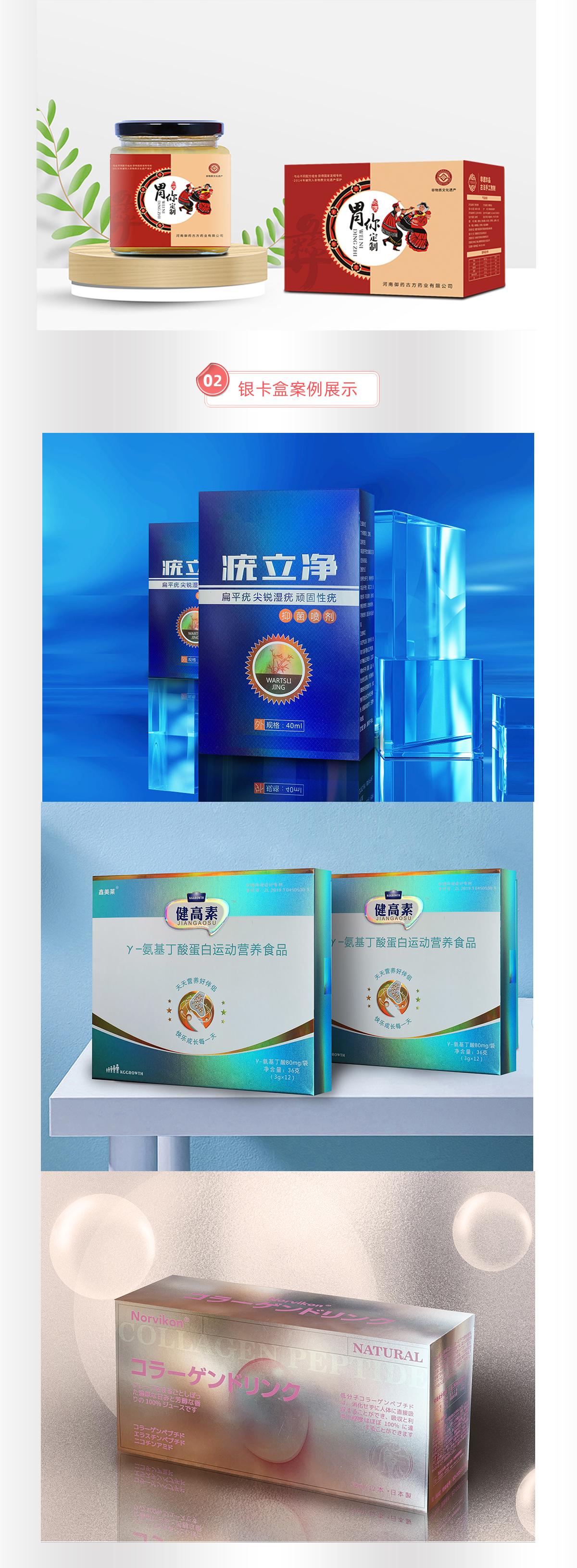 在主营产品方面,公司提供商务礼品定制服务,能够根据客户的需求和预算,定制出具有特色和纪念意义的商务礼品。对于营养食品包装定制,他们注重包装的功能性和美观性,确保食品在运输和储存过程中的安全,同时吸引消费者的目光。膏药盒包装定制也是其强项之一,会充分考虑膏药的特性,设计出合适的包装,保证产品质量。此外,大健康礼盒定制更是公司的重点业务,能够将多种健康产品进行合理搭配和包装,满足不同消费者的需求。