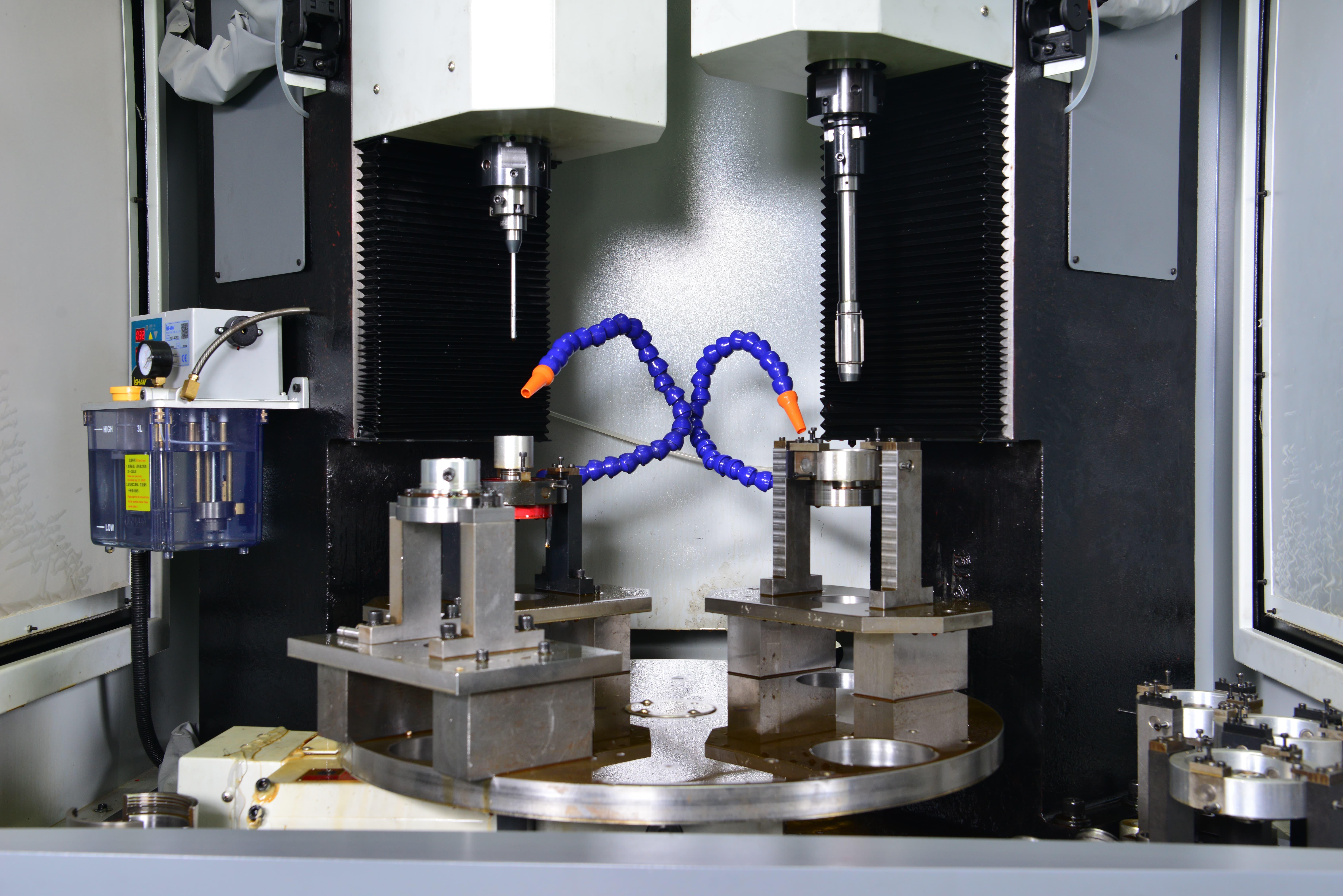 公司所生产产品主要功能部件均来自德国、日本、瑞士及台湾原装进口,以保证整个机床的精度、稳定性和寿命。目前,公司已经成熟的HLG系列高精度大小孔立式珩磨机和HTS系列深孔高速卧式深孔珩磨机,以及配套专用珩磨刀具、夹具,并已实现量产。此外,通过与高校合作,还研发出高精度六轴八工位珩铰一体机“HLD850”和高精度镗珩复合一体机“HM50”两种装备,以及配套系列珩铰工具。