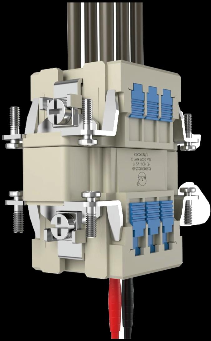 在产品质量和性能方面,唯恩电气严格管控与高标准认证。拥有70,000平方米的现代化生产基地,覆盖注塑、五金、压铸、电镀、模具及装配全链条车间,并配备专业的产品研发和性能检测实验室,垂直整合的生产模式确保了从原材料到成品的全程质量把控。产品通过VDE、UL、CE、CQC、CUL等国际认证,符合DIN VDE0110、IEC60529等工业标准,满足高可靠性要求,同时通过ISO9001:2015质量管理体系、ISO/TS22163(铁道行业)及ISO14001环境管理体系认证,确保生产流程规范化。公司采用自动化生产设备与精益管理理念,在连接器插芯、外壳等关键部件生产中,材料选用PC阻燃材料(阻燃等级V0),接触件采用铜合金镀银/金工艺,保障电气稳定性和耐腐蚀性,员工培训强调“精益求精”,将质量意识贯穿全流程。产品性能方面,具有高适应性技术设计。主力产品支持IP67/IP68防护,可在粉尘、潮湿、油污等恶劣环境中稳定工作,抗震、耐化学腐蚀性能突出;工作温度覆盖 - 40℃至 + 125℃,适用于高温工业设备或低温户外场景(如轨道交通、新能源电站);电流支持2A–800A,电压覆盖10V–1000V,满足新能源汽车高压连接(如电池、电控系统)、电力设备等大电流需求;机械寿命≥500次插拔(如HD系列插芯),冷压端子适配0.14–2.5mm²导线,确保长期连接稳定性;重载连接器实现模块化预安装,减少接线错误率,提升大型装备(如自动化产线)的部署速度。