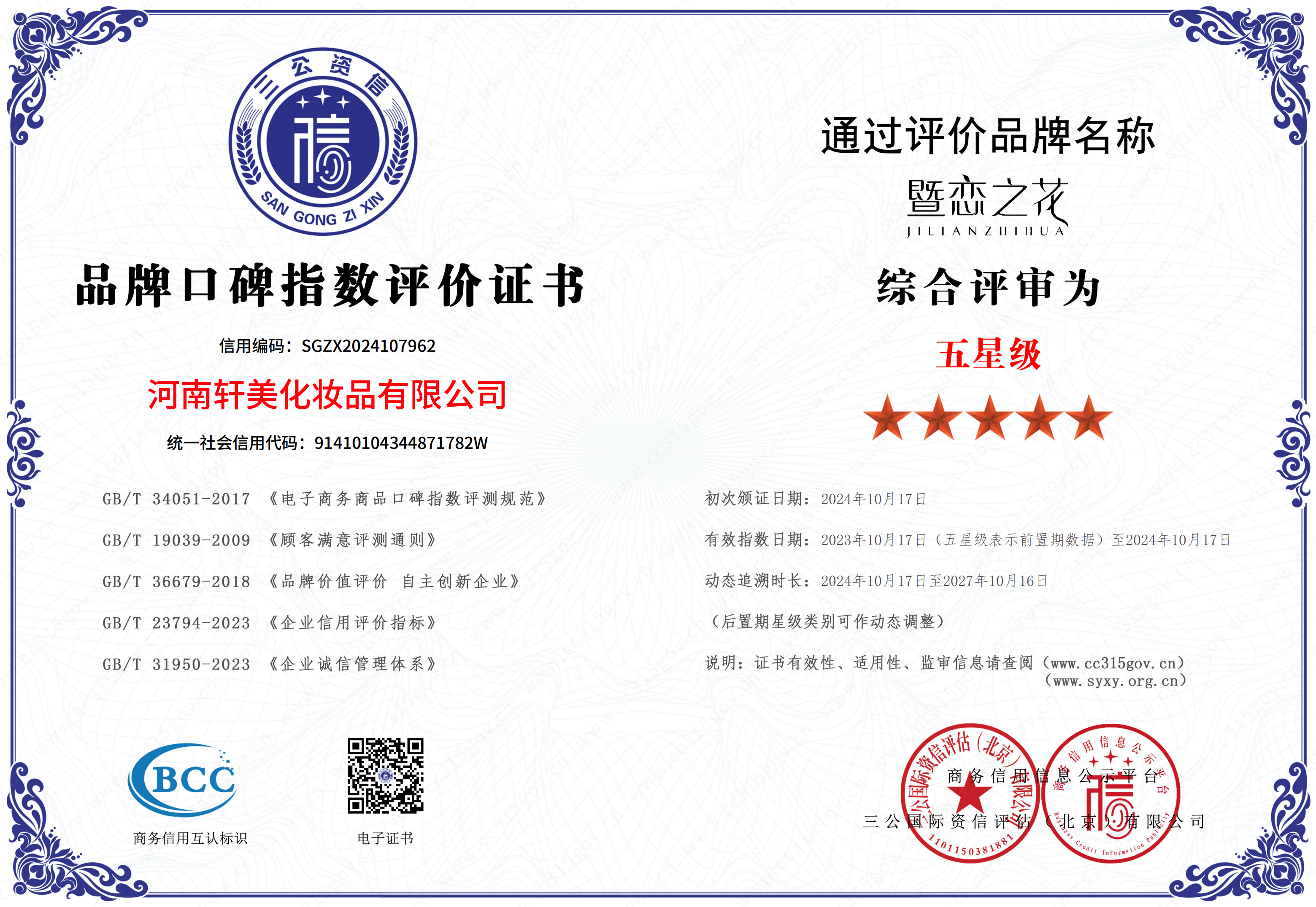 河南轩美化妆品有限公司旗下「暨恋之花」品牌,深耕问题皮肤修护领域,始终以严苛标准把控产品品质,凭借专业实力与良好口碑,荣获多项权威认证与行业荣誉,品牌公信力备受认可。如荣获《中国权威检测质量合格产品》认证,产品通过权威机构检测,品质合规、安全可靠;获评《全国问题皮肤修复行业优质品牌》,是行业内公认的专业修护标杆品牌;被授予《质量・服务・诚信AAA企业》称号,以高标准服务与诚信经营体系,赢得市场信赖;先后斩获《中国3.15消费者可信赖产品》《全国消费者放心满意品牌》荣誉,以用户口碑为基石,打造值得长期选择的护肤品牌;通过权威机构综合评审,获评五星级品牌口碑指数认证,评价依据覆盖电子商务口碑、顾客满意度、品牌价值、企业信用等多项标准,品牌综合实力获得官方认可。