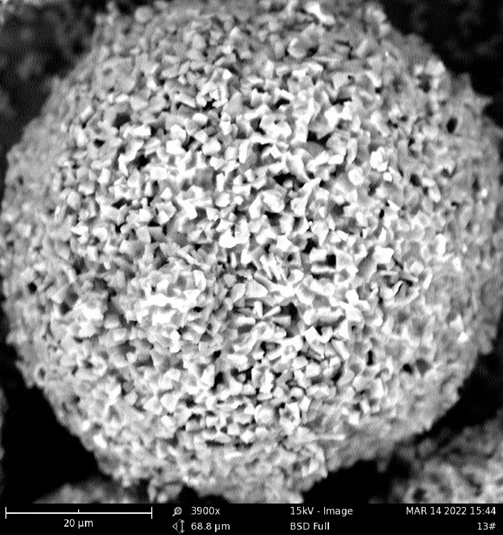 组团磨料:经特殊工艺制备的球形金刚石磨料,形状圆润,切削刃细小,表现为多棱结构。颗粒耐磨性好,自锐性好,切削力稳定。用于加工蓝宝石衬底、碳化硅衬底、功能陶瓷、石英玻璃、化镓等硬脆材料。