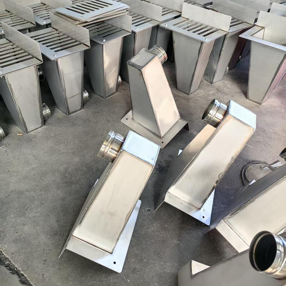 在产品优势方面,材质选用严谨,耐用性突出是其核心优势之一。公司主打各类不锈钢雨水斗,选用优质不锈钢材质,具备良好的抗腐蚀、抗老化性能,可有效抵御雨水、空气湿度及各类环境因素的侵蚀,延长产品使用寿命,减少后期更换与维护成本,适配户外、地下室等各类复杂使用环境。同时,铸铁侧排式雨水斗材质强度高、承压性好,适配不同荷载需求。
