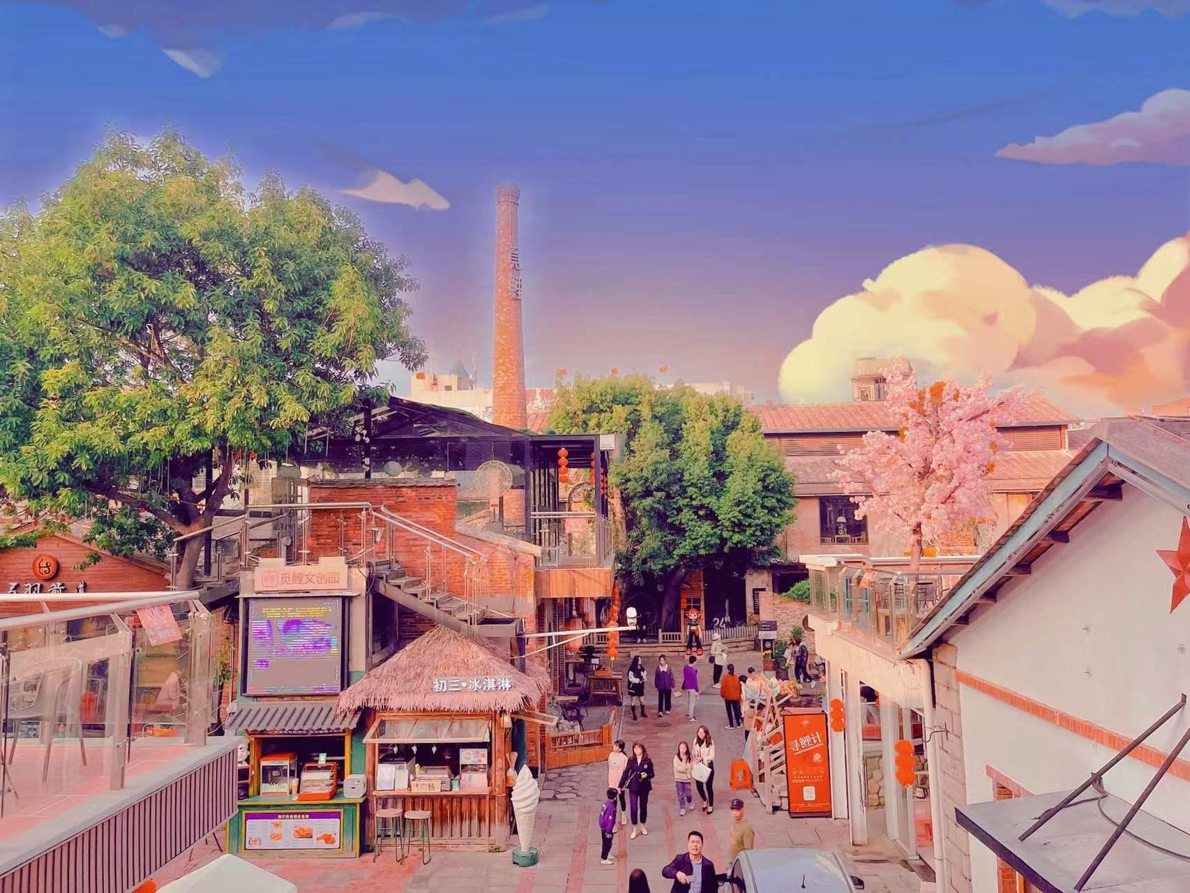 觅鲤文创园位于泉州古城核心,距地标钟楼仅168米,坐拥中山路黄金区位,能无缝衔接全城客流。园区由拥有60余年历史的泉州纸品厂旧厂房改造而成,秉持“修旧如旧,补新以新”的理念,在保留红砖厝、大烟囱、斑驳厂房等工业记忆的基础上,融入玻璃栈道、大树秋千、船形楼梯等现代设计元素,实现了历史底蕴与当代审美的交融,为游客构筑了独具一格的视觉与空间体验。