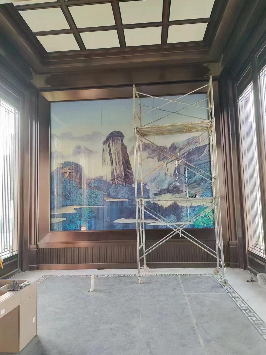 在产品特点方面,其玻璃具有多样化视觉效果,可实现半透明、朦胧透、不透明、双面看、单面看等多种呈现方式,满足不同空间对通透性与私密性的需求;支持图案自由定制,涵盖花鸟、山水、抽象画、几何图形等任意图案设计,亦可来图来样加工,满足个性化装饰需求;拥有多种玻璃品类,涵盖夹丝、夹绢、夹画、渐变、炫彩、调光、压花、异型弯钢等系列,适配各类室内外场景。