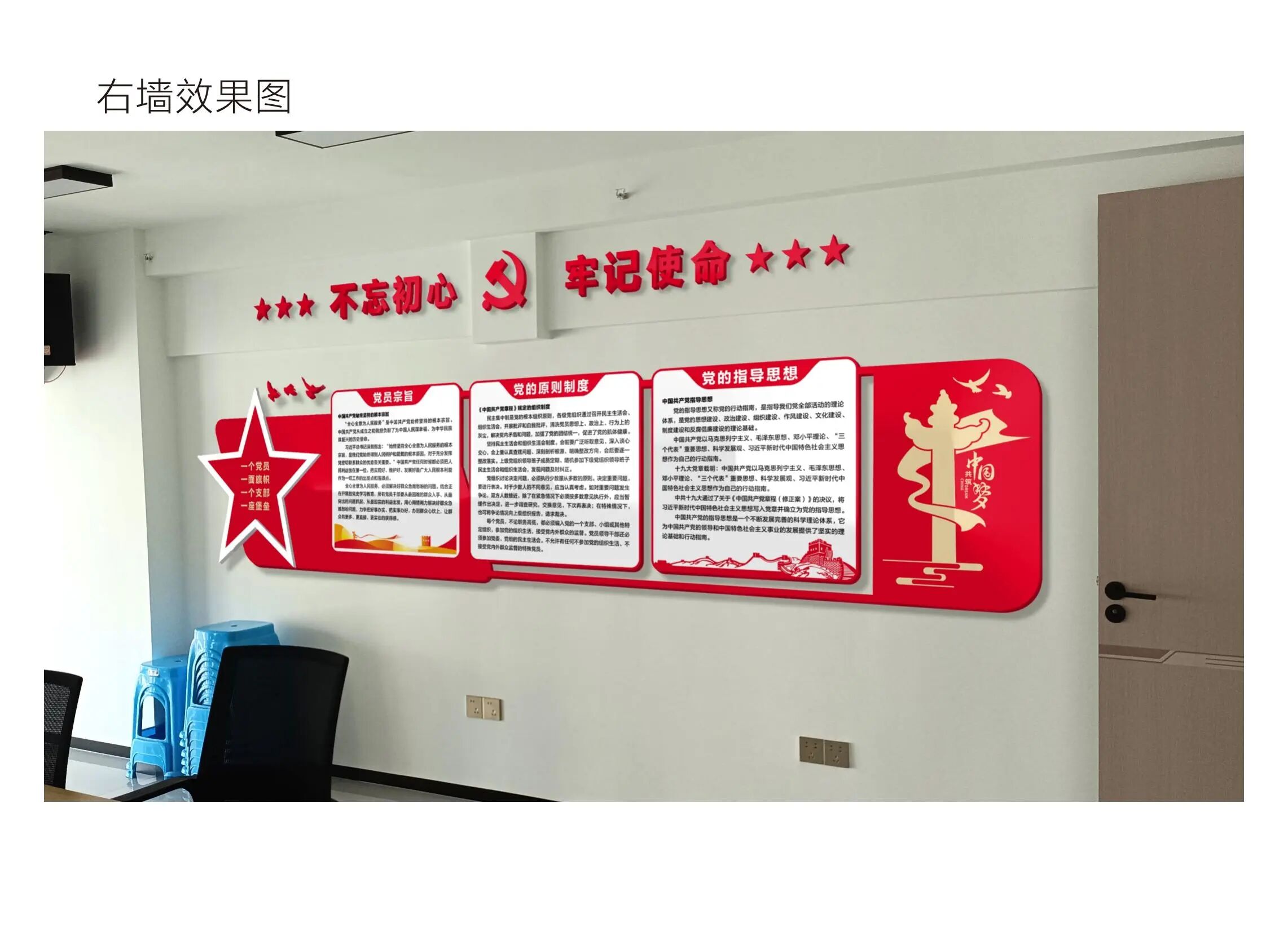 定义:党建文化墙是通过图文并茂的形式,将党的历史、理论、政策以及地方党建成果进行展示的一种墙面装饰艺术。它不仅美化了环境,更成为了党员群众学习党史、了解党情的重要窗口。