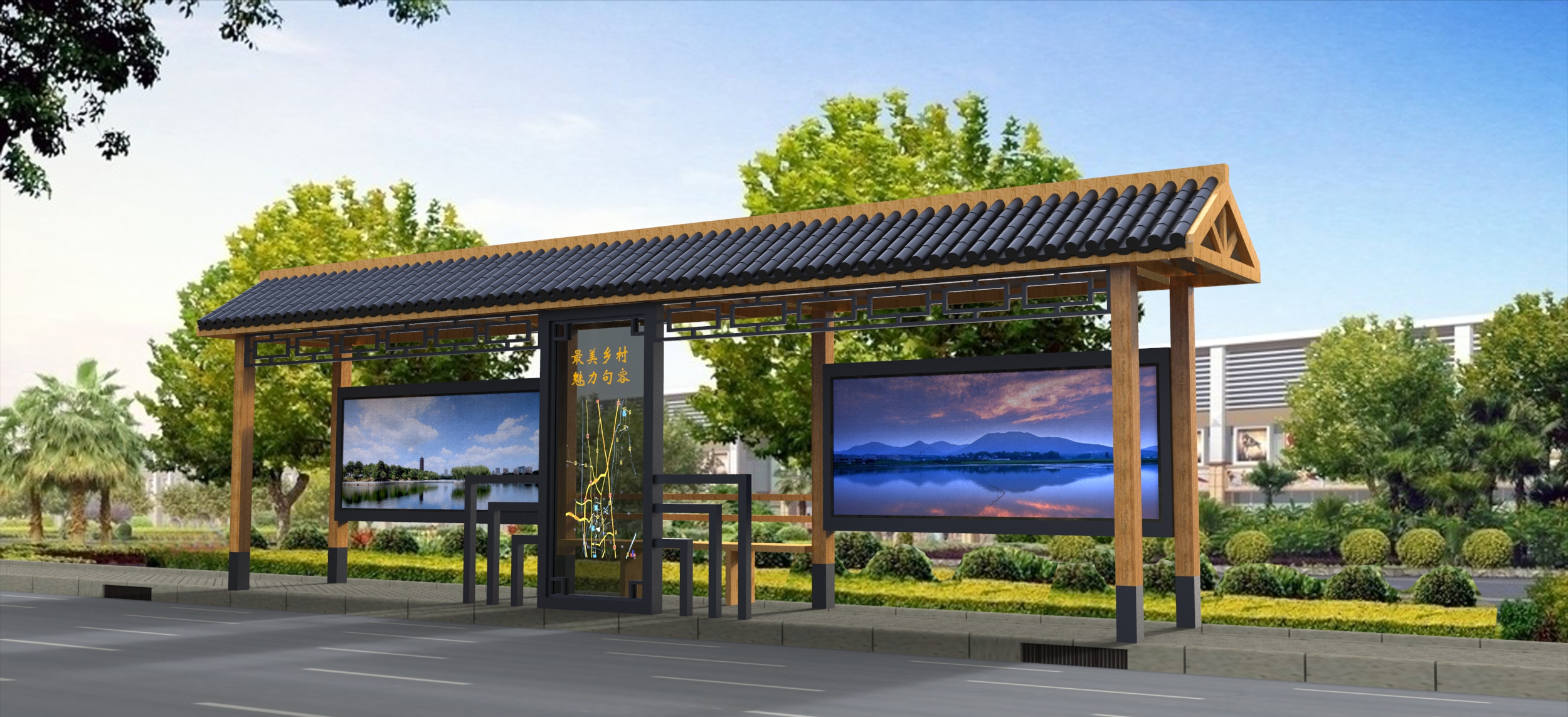 江苏乾立科技有限公司的仿古候车亭,设计独特,融合了传统与现代的元素,既具有古典韵味,又不失现代实用性。其材质选用优质钢材和木材,经过精心加工和处理,具有耐腐蚀、耐磨损、耐高温等特点,能够适应各种恶劣的气候环境。