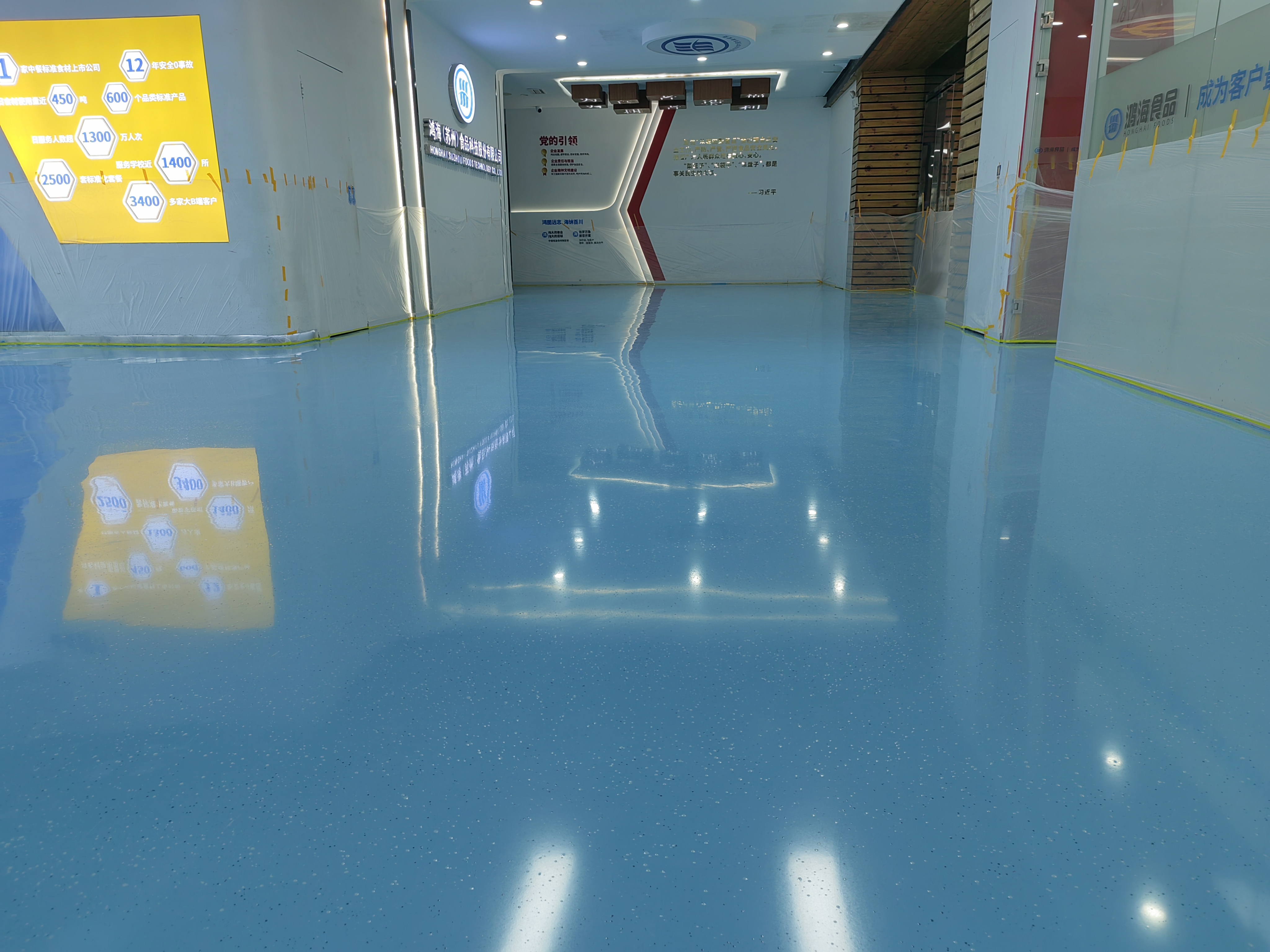 其产品具有表面强度高、耐磨损、不起尘、施工工期短、不易褪色、抗油脂、易清洁、不锈蚀等优点。