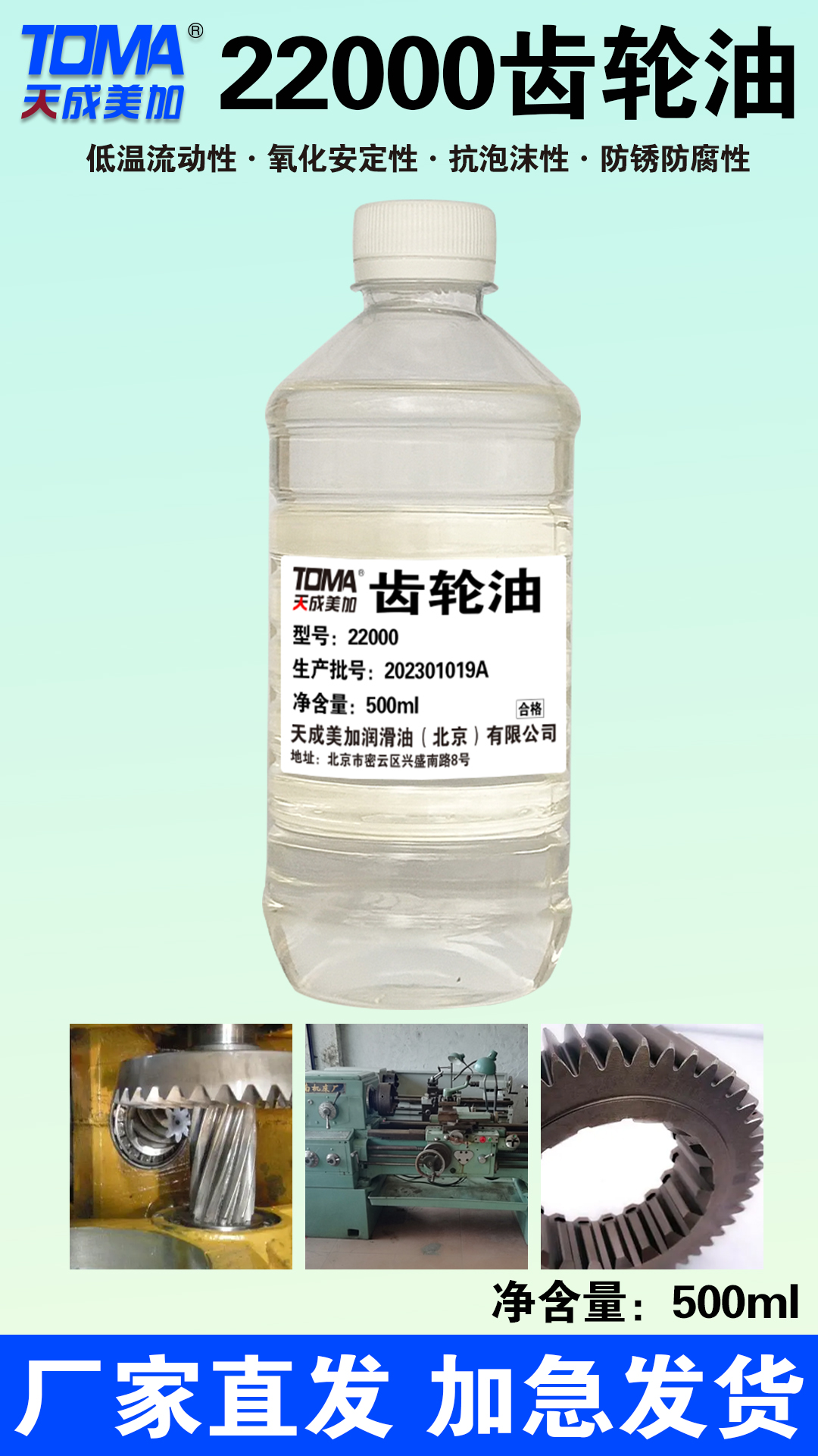 天成美加润滑油(北京)有限公司成立于2014年7月7日,是一家专注于工业润滑油、车用润滑油及润滑脂销售与技术服务的企业。公司以'成就更多的小伙伴,合作共赢每一天'为使命,不仅经销自有品牌天成美加(TOMA)润滑油,还代理长城(SINOPEC)、昆仑(Kunlun)等知名品牌,产品覆盖液压油、齿轮油、导热油、导轨油、循环油、汽轮机油、金属加工油、食品级润滑油、汽机油、柴机油等百余种类型,其中车用润滑油系列包含原厂防冻液等核心产品。