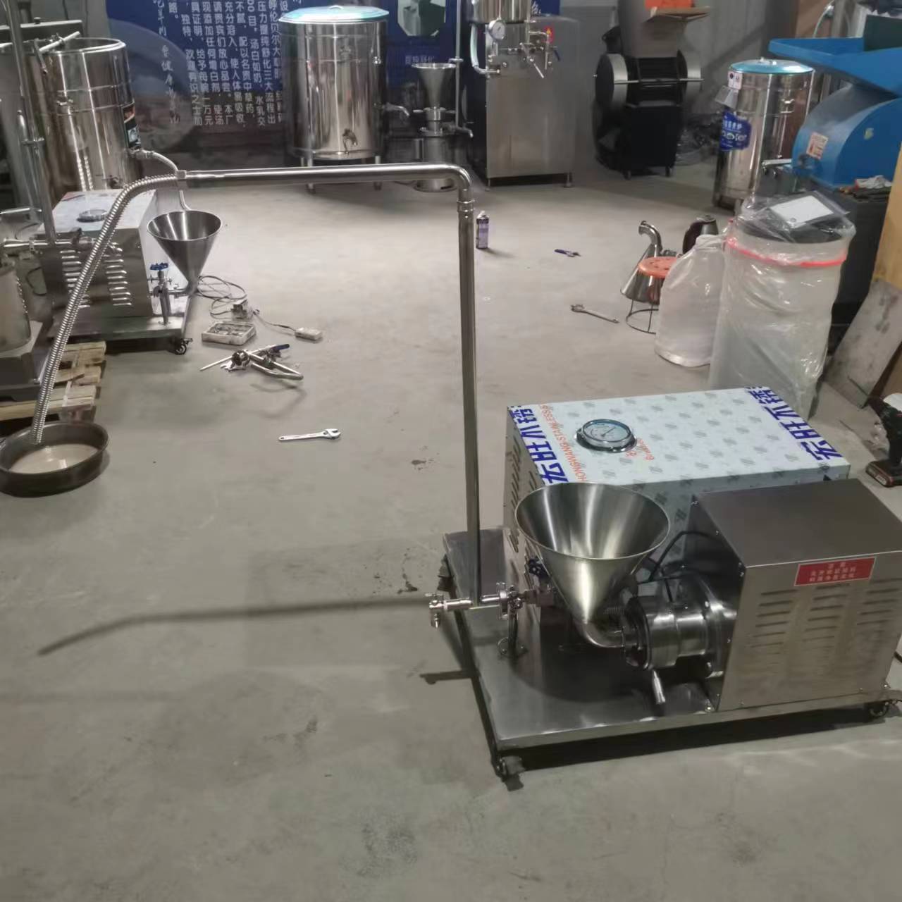 从产品的各项参数来看,公司产品具有很强的优势。以骨汤舒化机为例,其电压为380,功率达到2500 4(KW)240,规格为500 ,重量为3000 kg,外形尺寸为1200。装置方式为固定式,工作方式采用高速研磨机和均质乳化搅拌机,乳化机类型为高压均质机,速度类别为低速且有级变速(多速),粉碎程度为中碎机,整机重量420公斤,生产能力为500(kg/h),每次处理量范围在101 - 500千克,粉碎能力强,能很好地处理羊肉汤骨汤等物料。