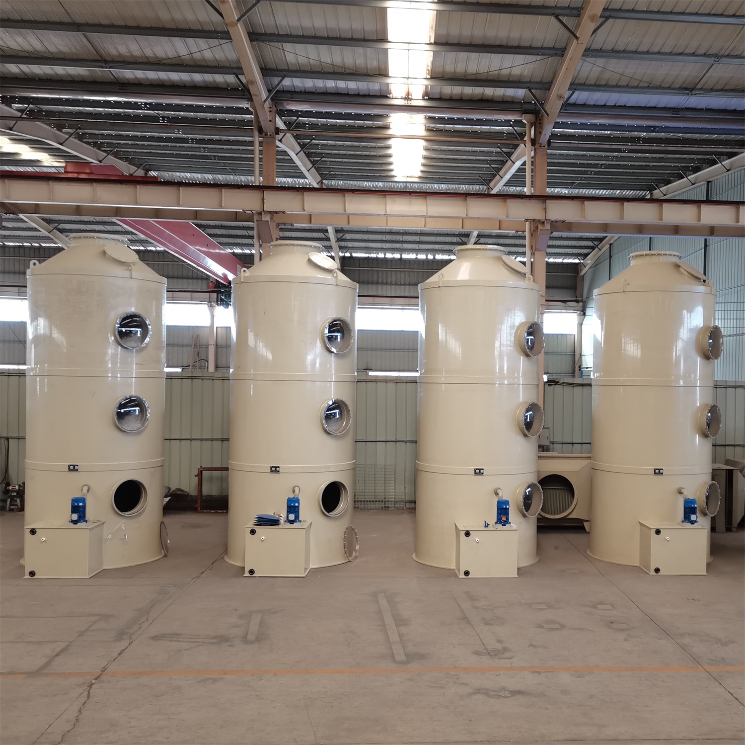 公司的主营产品丰富多样,主要有生物滤池除臭设备、污水站除臭一体化设备、活性炭吸附装置、除水雾装置、喷淋光氧一体化设备、低温等离子设备、废气喷淋洗涤塔、污水一体化设备、污水地埋设备、病死动物无害化处理成套设备、工业和净水设备、除尘设备、污水池反吊模(PVDF)和玻璃钢(FRP)扣盖、PP材质的斜管沉淀设备、气浮设备、电解设备、酸解设备、三相分离器等,植物液喷淋一体化装置、冷凝设备、通风管道、排空消声器、PP风管等。如此丰富的产品线能够满足不同客户对于有机肥臭气处理及其他环保方面的多样化需求。