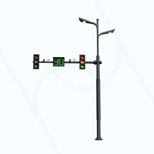从产品质量和性能来看,公司的信号灯杆表现出色。其结构稳定、安全耐用,多采用八棱锥形杆,强度高、抗风抗震能力强。在防腐工艺上,采用热浸镀锌 + 静电喷塑双层防腐,防锈、防脱落效果好,户外使用寿命可达 15 - 20 年。信号灯杆规格齐全,高度在 3m - 8m 为常规范围,也可做更高;样式有单悬臂、双悬臂、L 型、T 型、框架式等,还可按路口宽度、车道数、安装设备定制悬臂长度。此外,其外观规整,表面光滑无色差,可按城市要求做定制颜色、LOGO、标识,有助于提升市政形象。