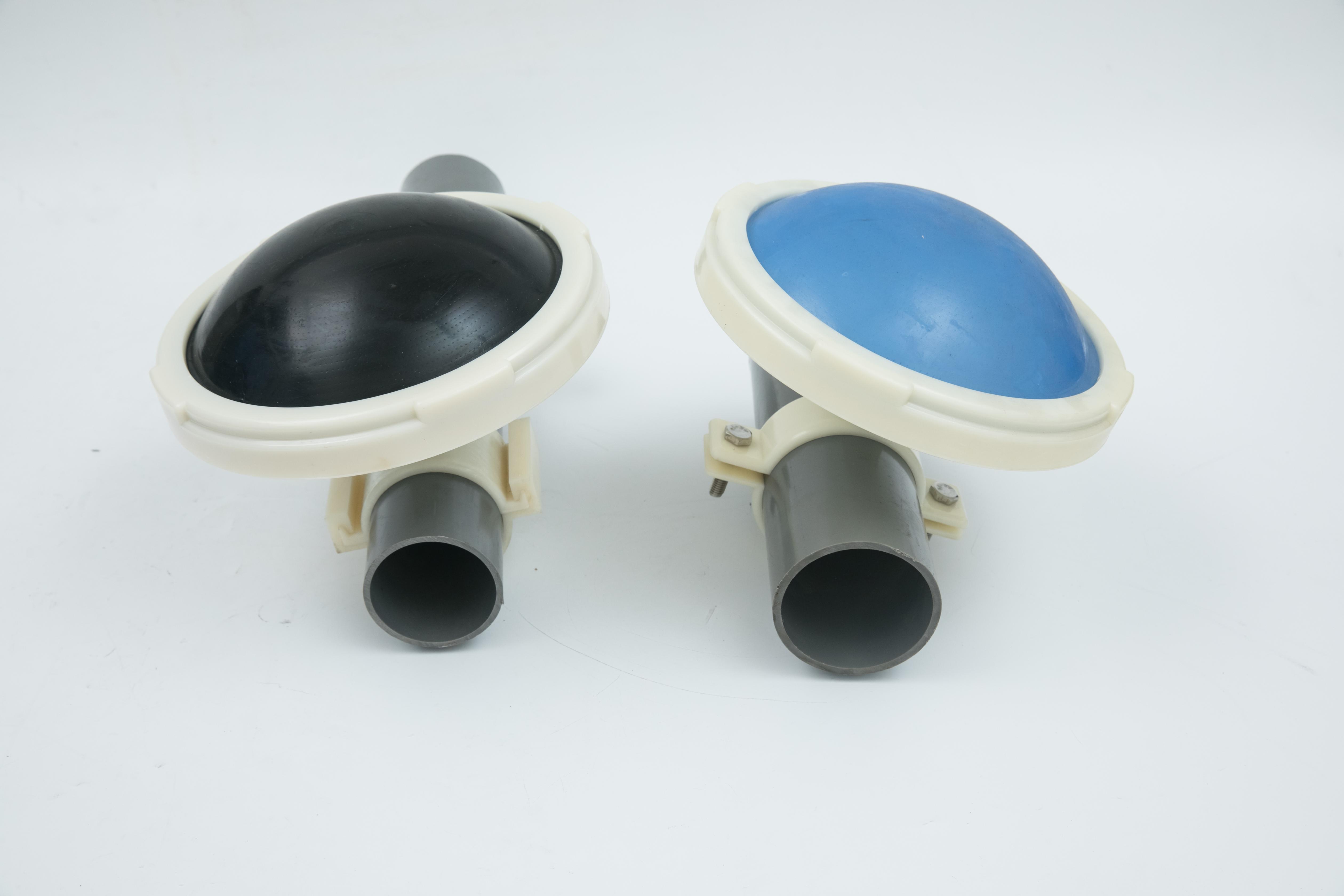 其材质为ABS尼龙,服务面积为0.45 - 0.55m²/个。充氧效率方面,当水深4m时,η = 16—20%。外型尺寸为φ260×H210,主要组成包括多层锯齿布气头,螺旋切割系统及连接管。