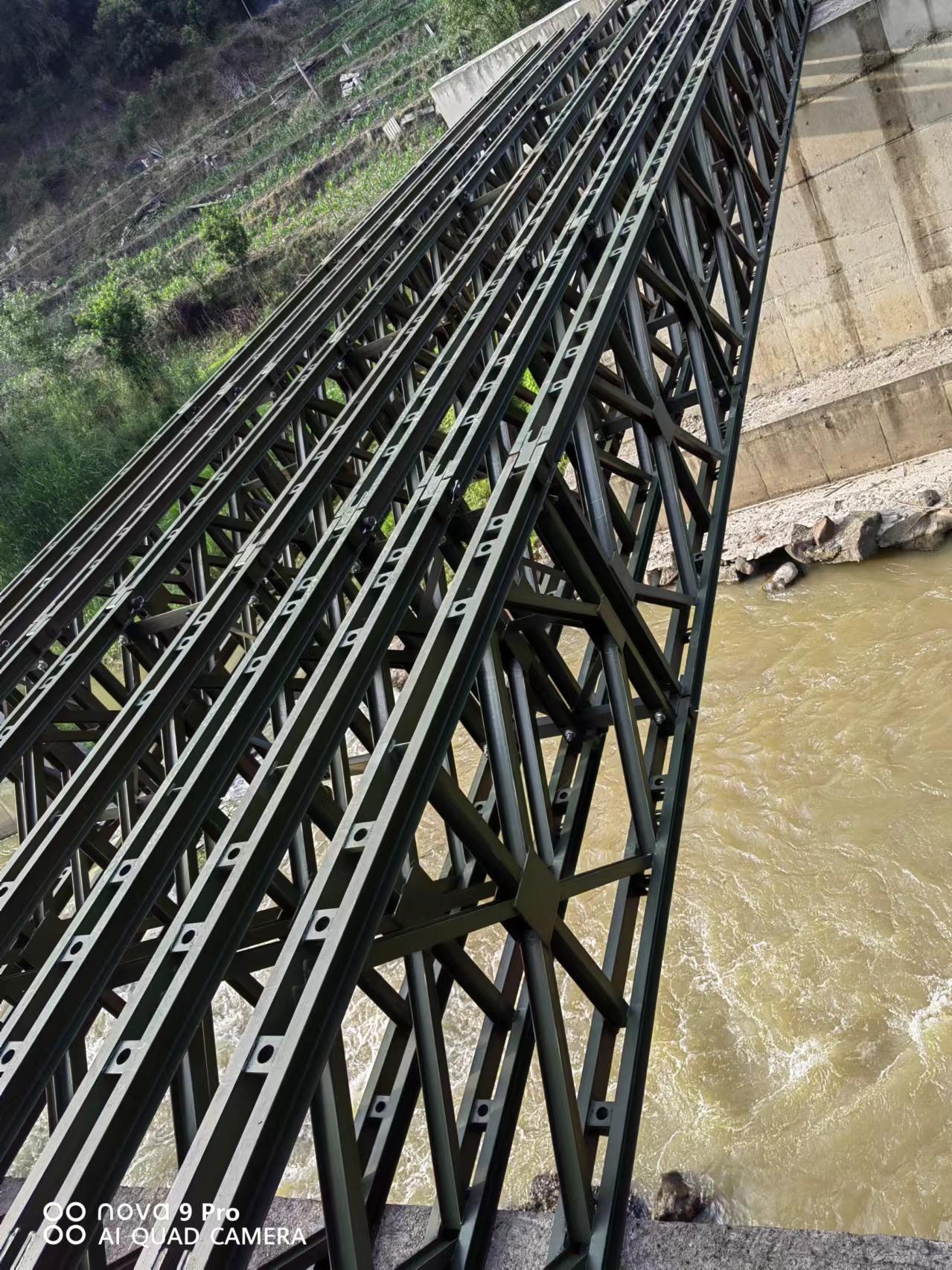 其产品质量和性能也十分出色。租赁的各类产品具备模块化、轻量化、稳定性强的核心优势。贝雷片采用高强度钢材制造,结构强度高、承载性能稳定,单片自重轻且尺寸统一,互换性强,可快速拆装。贝雷梁、贝雷桁架整体稳定性突出,321型贝雷桥净车道宽3.7米,HD200型贝雷桥净车道宽可达4.2米,可承载单车60吨荷载。钢便桥、装配式钢便桥可快速装配和拆除,配备整体式抗风拉杆和跨接固定水平支撑架,有效提升整体抗风性和抗侧弯能力。