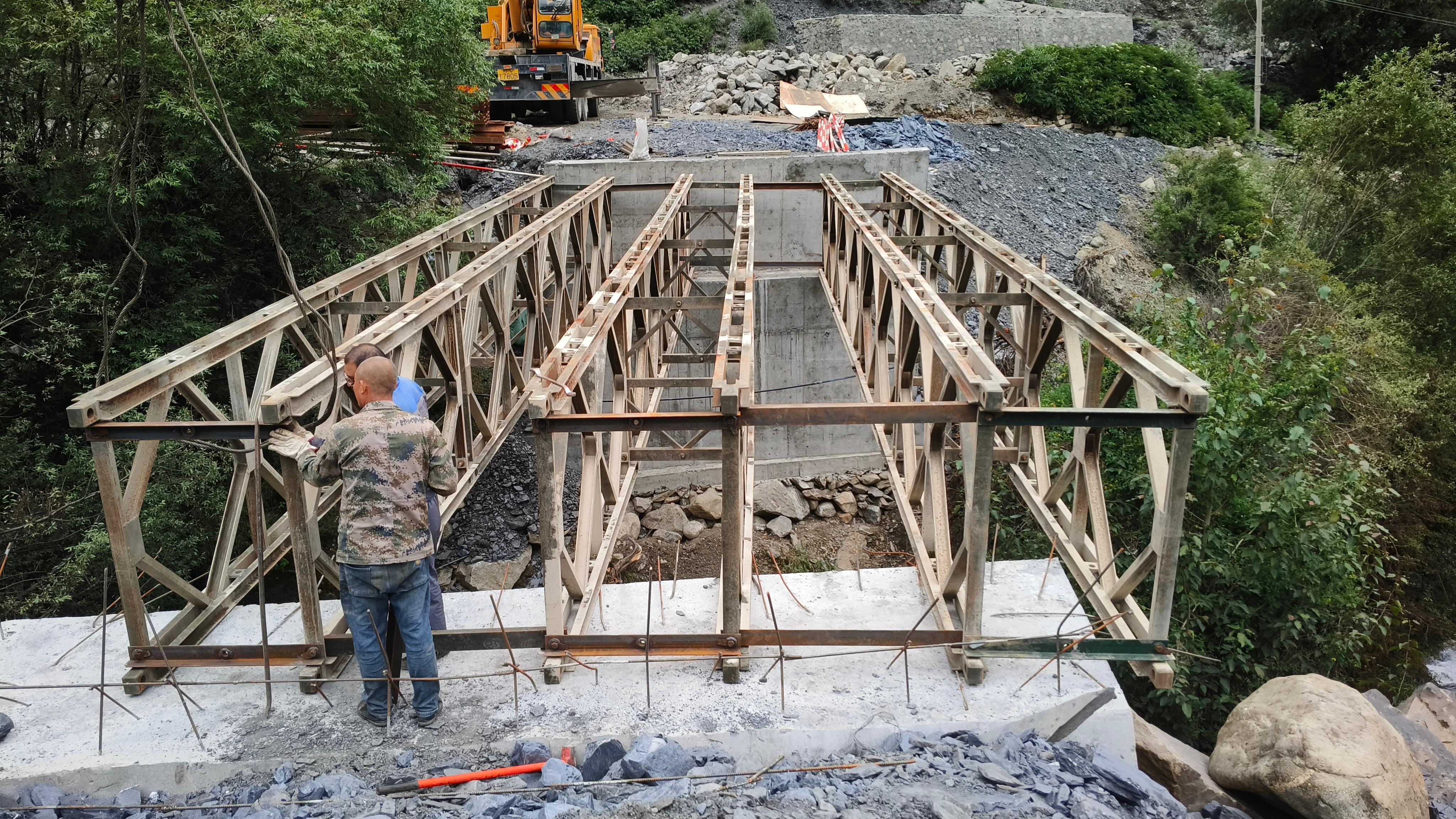 贝雷桥由钢材制成,包含轻便的标准化桁架单元构件及横梁、纵梁、桥面板、桥座及连接件等,用安装设备可就地拼装成适用于各种跨径、荷载的桁架梁桥。贝雷桥分为321钢桥和HD200钢桥,已广泛应用于抢险救灾、交通工程、市政水利工程、危桥加固等方面。
