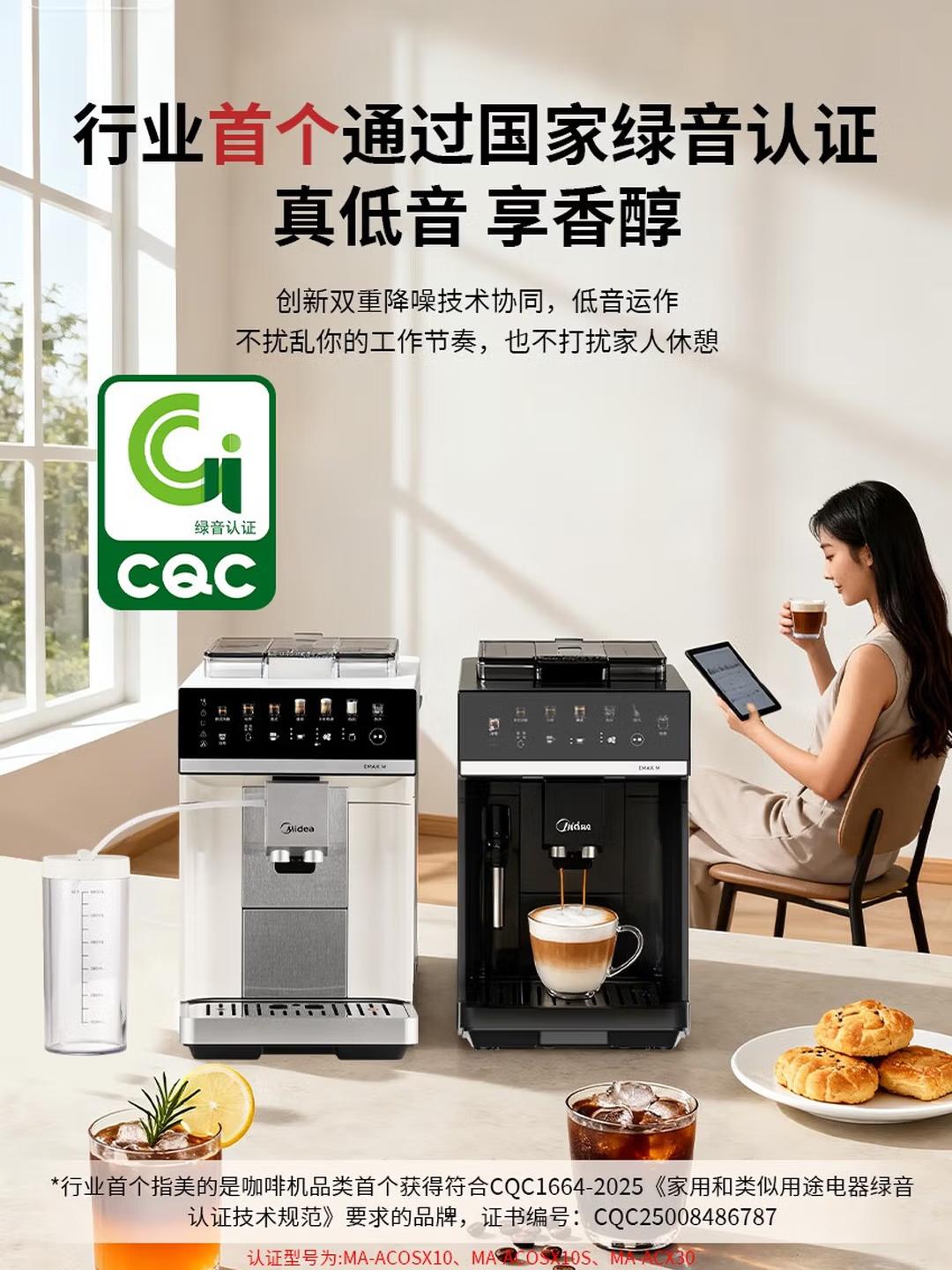 下面具体介绍这两款机型。美的MA - ACX10S(X10S)于2025年6月上市,净重9.9KG,水箱容量1.8L,豆仓容量250g,配备无界炫彩大屏,机身尺寸220×467×369mm。核心功能上,萃取搭载自研EMAX防残留萃取平台,采用双自由度立式核心,搭配15bar泵压萃取,管路反吸残渣减少残液,可形成完整咖啡粉饼,萃取状态稳定;支持精控冷萃制作,以低温低压方式萃取,降低饮品酸涩感,3分钟即可完成制作;配备M + Cloud手动可调奶泡系统,奶泡厚度2档可调,适配动物奶与植物奶,奶泡品质通过专业评价体系验证。品质与耐用设计方面,采用TPE降噪豆仓、悬浮降噪阀双重降噪设计,搭配红外缺豆提醒,避免设备空转损耗;支持开关机75℃活水清洁,萃取系统可拆洗,机身多组件可拆卸,配备专属清洁、除垢程序,无清洁死角;整机经过10000 + 次寿命测试、酿造萃取15000 + 次测试、研磨循环14000 + 次测试。