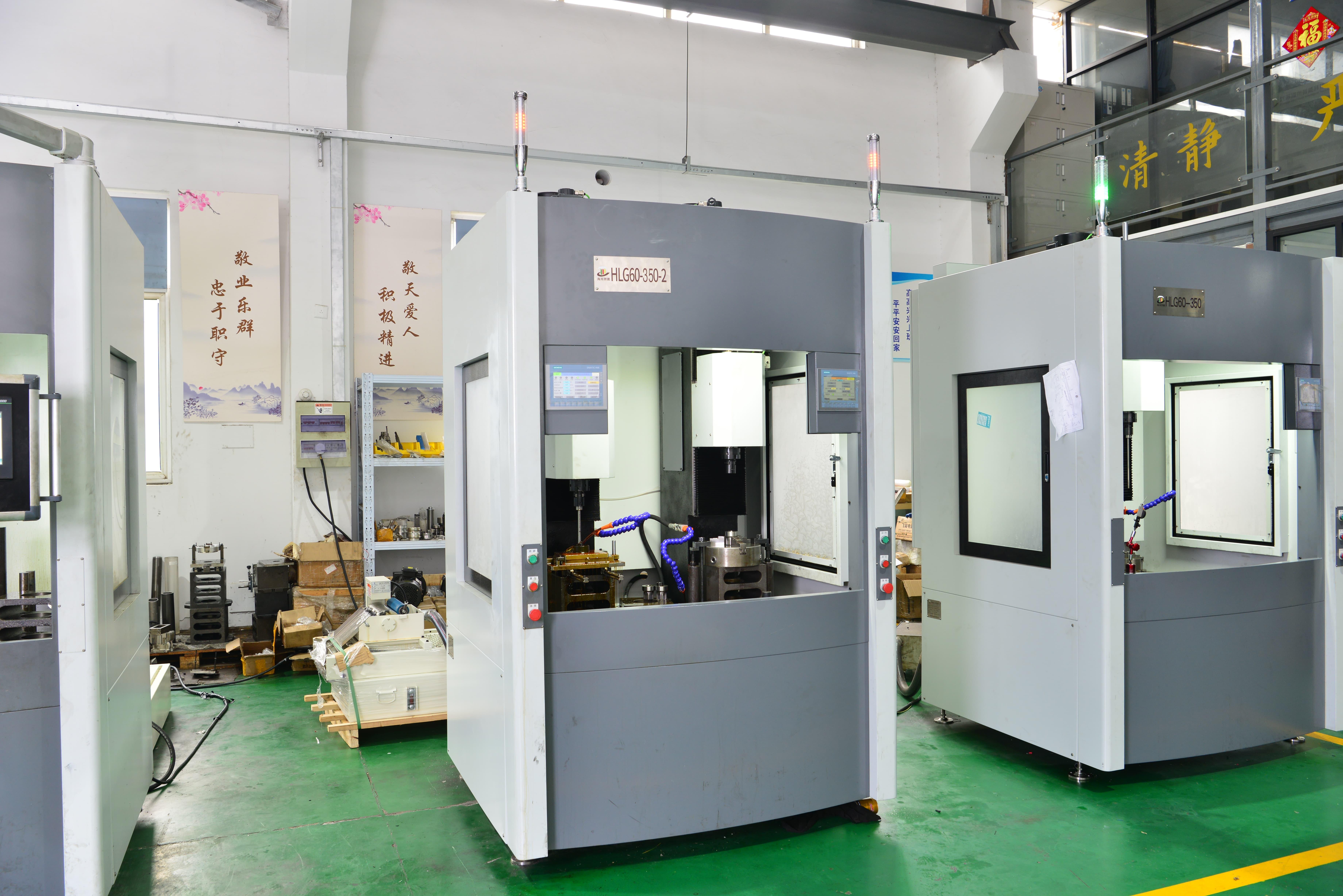 目前,公司已经成熟的HLG系列高精度大小孔立式珩磨机和HTS系列深孔高速卧式深孔珩磨机,以及配套专用珩磨刀具、夹具,并已实现量产。通过与高校合作,还研发出高精度六轴八工位珩铰一体机“HLD850”和高精度镗珩复合一体机“HM50”两种装备,以及配套系列珩铰工具。