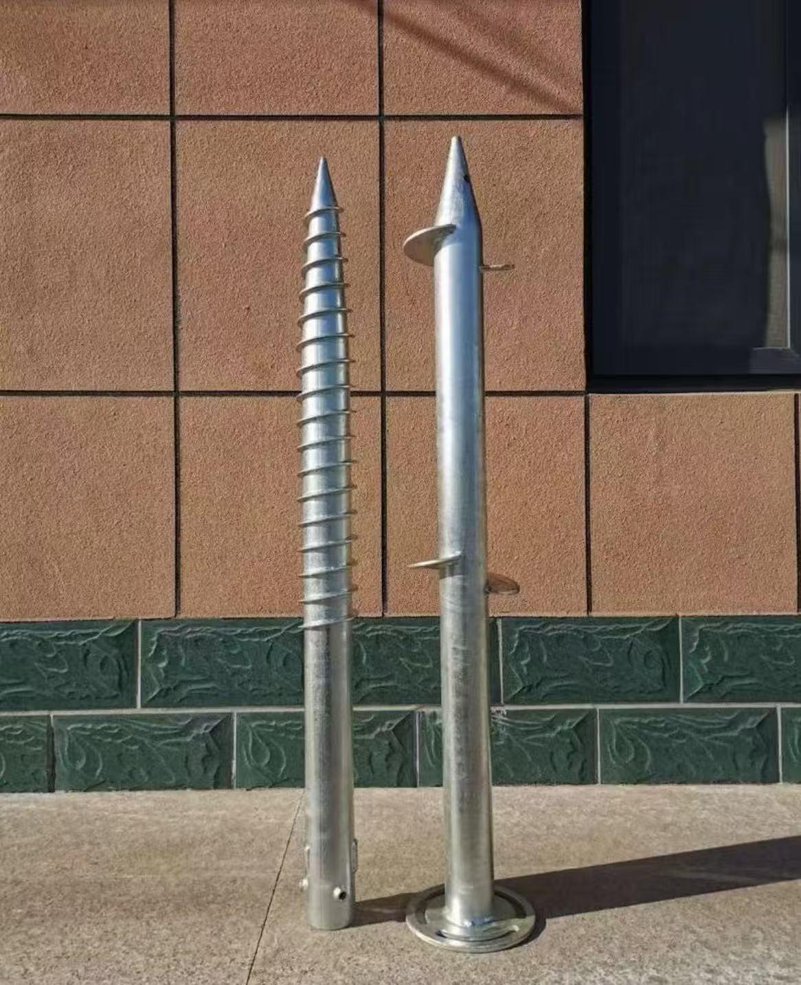 公司主营地桩、螺旋地桩、螺旋钢桩、光伏地桩、地螺丝、预埋地桩、交通防撞柱、冲击桩、麻花桩、三角桩、太阳能连接底座等核心产品。在产品质量和性能方面,严格遵循GB/T 50017钢结构设计规范、JGJ94建筑桩基技术规范及ISO 1461热镀锌标准组织生产,关键尺寸公差、力学性能、防腐指标均符合行业与出口要求。产品优选Q235B/Q355B优质钢材,桩体采用无缝/直缝焊管,螺旋叶片精准焊接、法兰连接稳固。螺旋地桩、光伏地桩配连续/分段叶片,增强土体抓附力,抗压、抗拔、抗剪性能稳定;地螺丝、预埋地桩结构紧凑、定位精准,适配快速锚固;交通防撞柱、冲击桩采用加厚管壁,部分内部加强处理,抗冲击强度高;全系列产品经整体热浸镀锌,锌层达标,耐候防腐、适应复杂环境。