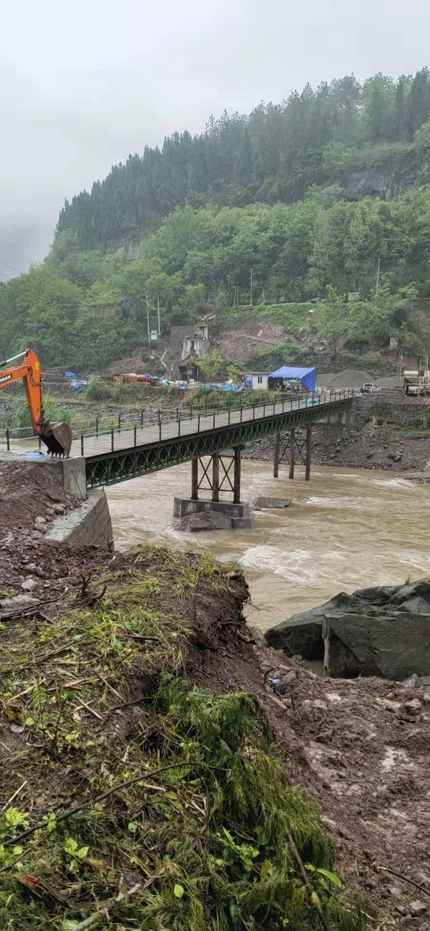 贝雷桥作为该公司的重要产品,以钢材制成轻便的标准化桁架单元构件及横梁、纵梁、桥面板、桥座及连接件等组成,用安装设备可就地拼装成适用于各种跨径、荷载的桁架梁桥。贝雷桥分为321钢桥和HD200钢桥,已经广泛应用于抢险救灾、交通工程、市政水利工程、危桥加固等方面。