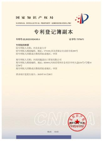 该公司还拥有众多**资质,是中国招标推荐企业、中国招标领域综合服务推荐品牌、中国农药工业协会会员单位。企业拥有100多项知识产权,包括发明专利、版权、商标等,还拥有海外进出口贸易资质、有害生物防治服务企业一级资质。此外,企业经过中国人民财产保险股份有限公司认证,央企中国人保为企业产品承担责任险,为产品保驾护航。2025年9月,国義农科&国义风韵品牌获得天使融资,同年和多个国内事业单位、公立大学、国内重点实验室合作获得了中国发明专利技术成果转化,具有显著的社会效益和经济价值。