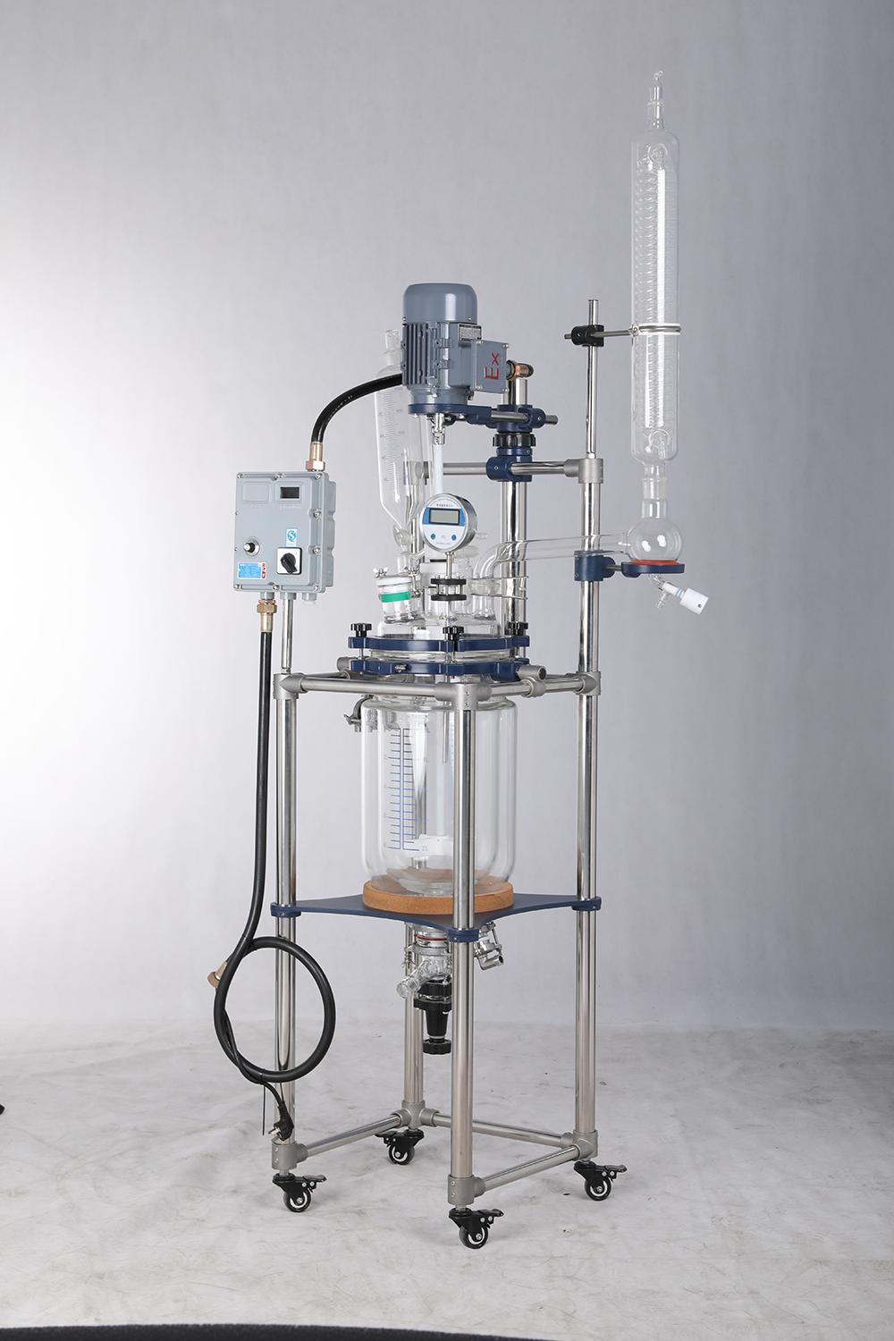 单层玻璃反应釜核心特点是结构简单、无夹套、成本低、操作方便、适合常压/真空、常温/低温、简单反应,主要用于实验室小试、教学、简单混合、低温反应、常压反应等场景。采用高硼硅玻璃升级,抗热震、抗冲击、耐温耐腐性能提升。快开式釜盖、可拆搅拌、快装接口,拆装、清洗、换料更高效。PTFE + 玻璃双端面密封、真空密封,实现高真空、零泄漏。