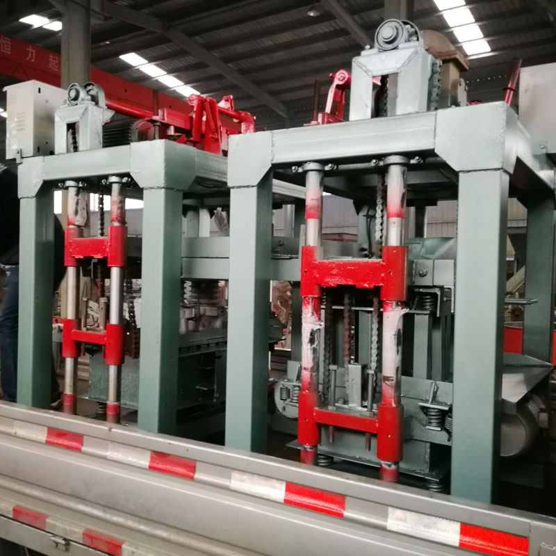 3、压头可纵向移动,便于加料、维修和冲洗,同时压头下落距离小,仅20mm,一方面压脚与箱、芯间隙小,砌块无大毛边;另一方面对箱芯损坏少。