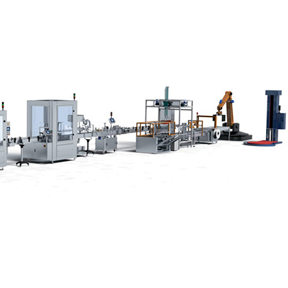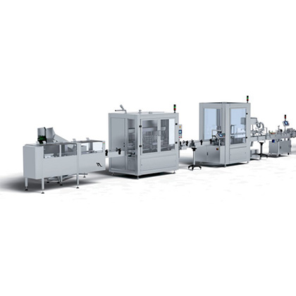适用于膏霜类产品包装要求,整套设备由自动理瓶机、灌装机、自动上盖扎盖机、全自动贴标机设备组成。