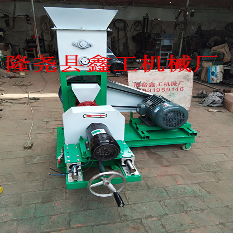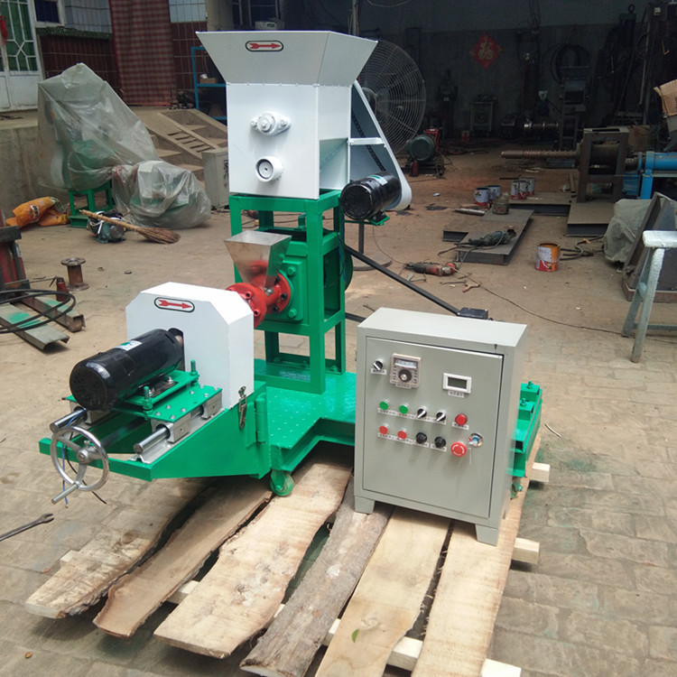该机为颗粒饲料膨化设备。可生产多种花形,并可根据要求订做模具,产品出料口处配有变频调速的旋切装置,可任意调整刀片旋转速度,来控制切割的速度和长短。多用途宠物、鱼、虾膨化饲料机(宠物的食品,还是宠物膨化机)随着我国国民经济的迅速发展,各类宠物,鱼、虾等膨化饲料的数量在急剧增加,并正在走向商品化和规模化,市场异常火爆。宠物食品与传统饲喂方法有着极大的差别,本设备以玉米、大豆(豆饼)动物下脚料等为原料,直接加入机械内即可膨化生产不同颗粒形状新颖、口感独特、营养丰富、组织细腻,适合于狗、猫、鱼、鸟、兔、虾、狗、猫、貂、狐狸等不同宠物口味的饲料。适用于养殖户、中小型饲料厂和研究机构。在饲料配方相同的情况下,使膨化饲料成本低于市售百分之60-百分之80;使用本机器生产的膨化饲料颗粒,成型整齐光滑,漂浮水面12小时以上不下沉,不污染水源,减少鱼病。