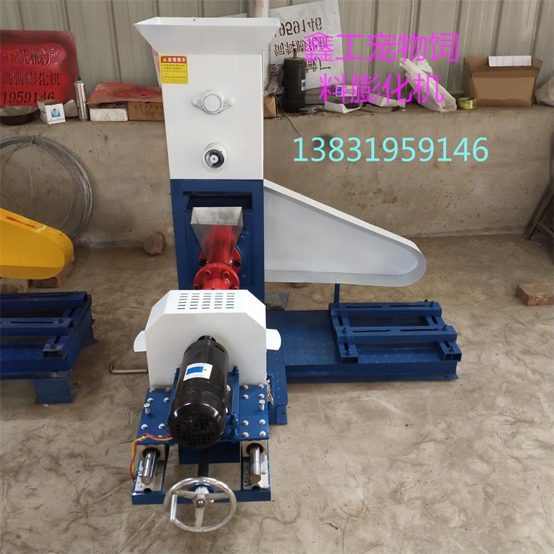 该机为颗粒饲料膨化设备。可生产多种花形,并可根据要求订做模具,产品出料口处配有变频调速的旋切装置,可任意调整刀片旋转速度,来控制切割的速度和长短。多用途宠物、鱼、虾膨化饲料机(宠物的食品,还是宠物膨化机)随着我国国民经济的迅速发展,各类宠物,鱼、虾等膨化饲料的数量在急剧增加,并正在走向商品化和规模化,市场异常火爆。宠物食品与传统饲喂方法有着极大的差别,本设备以玉米、大豆(豆饼)动物下脚料等为原料,直接加入机械内即可膨化生产不同颗粒形状新颖、口感独特、营养丰富、组织细腻,适合于狗、猫、鱼、鸟、兔、虾、狗、猫、貂、狐狸等不同宠物口味的饲料。适用于养殖户、中小型饲料厂和研究机构。在饲料配方相同的情况下,使膨化饲料成本低于市售百分之60-百分之80;使用本机器生产的膨化饲料颗粒,成型整齐光滑,漂浮水面12小时以上不下沉,不污染水源,减少鱼病。