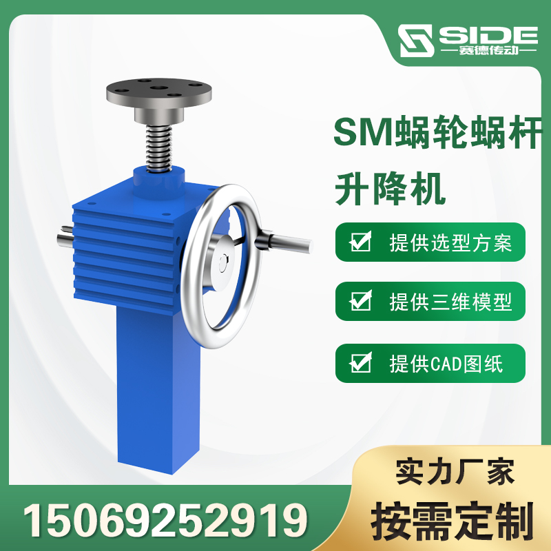 SJ蜗轮丝杆升降机 是一种起重部件,和-系列丝杆升降机相比具有结构紧凑、体积小、安装方便、输入形式多样、可靠性高、寿命长等许多优点,具有起升下降及借助轴件驱动,反转等多种功能,可单台使用或多台组合使用,该产品可以利用电动机或者-驱动装置驱动,也可以手动,广泛应用与冶金、机械、水利、医疗、化工等行业.