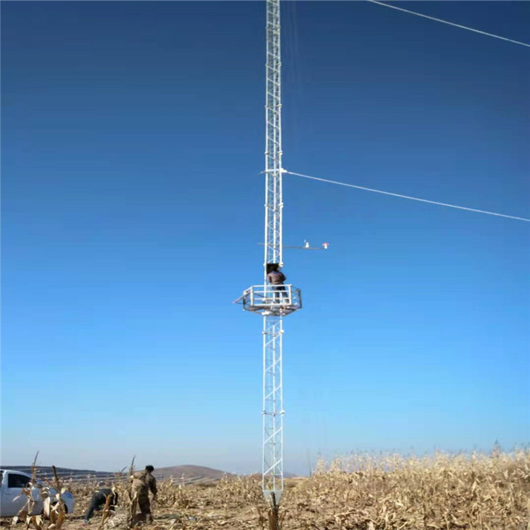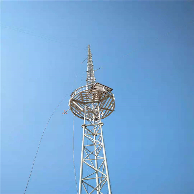用钢绞线斜拉加固方式,高度一般为10-150米。在塔体不同高度处安装有风速计、风向标以及
