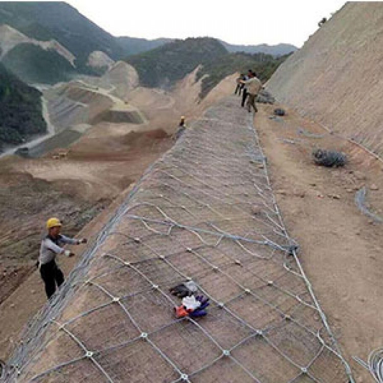 作用原理上类似于喷锚和土钉墙等面层护坡体系,但因其柔性特征能使系统将局部集中荷载向四周均材质:钢丝绳网、普通钢丝格栅(常称铁丝格栅)和TECCO高强度钢丝格栅 匀传递以充分发挥整个系统的防护能力,即局部受载,整体作用,从而使系统能承受较大的荷载并降低单根锚杆的锚固力要求 。