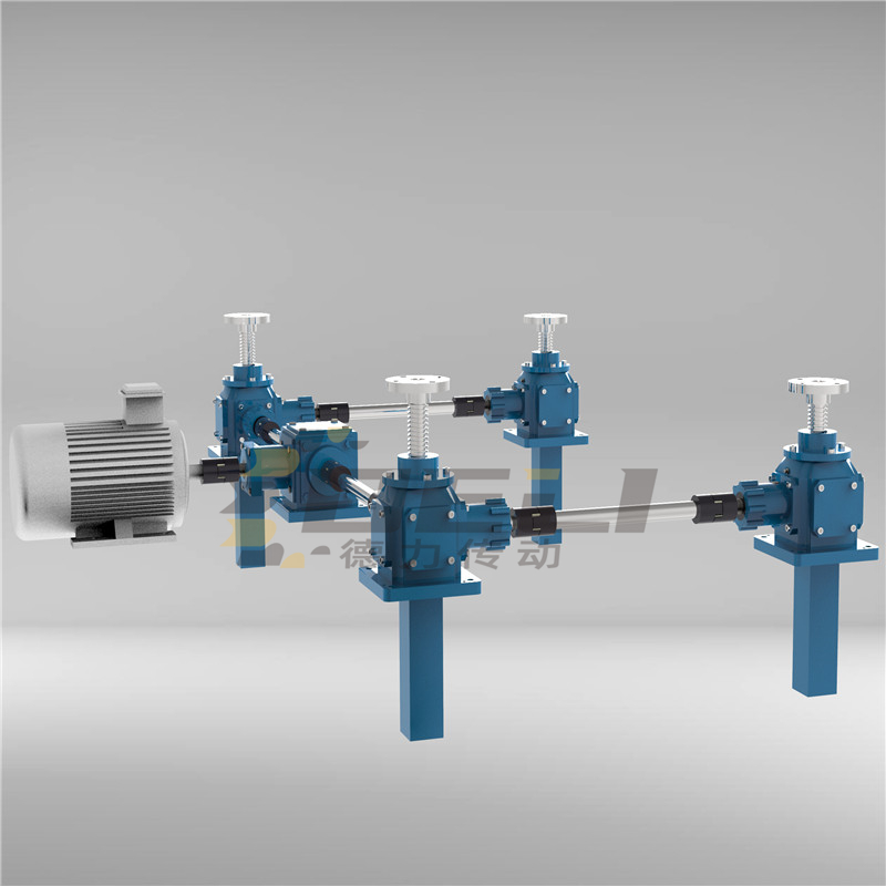 丝杆升降机工作平台不管是两台、三台、四台的驱动我们建议都尽量采用一台电机来完成,因为电机每分钟的转速都有速差,如果采用多台驱动很难达到同步稳定。