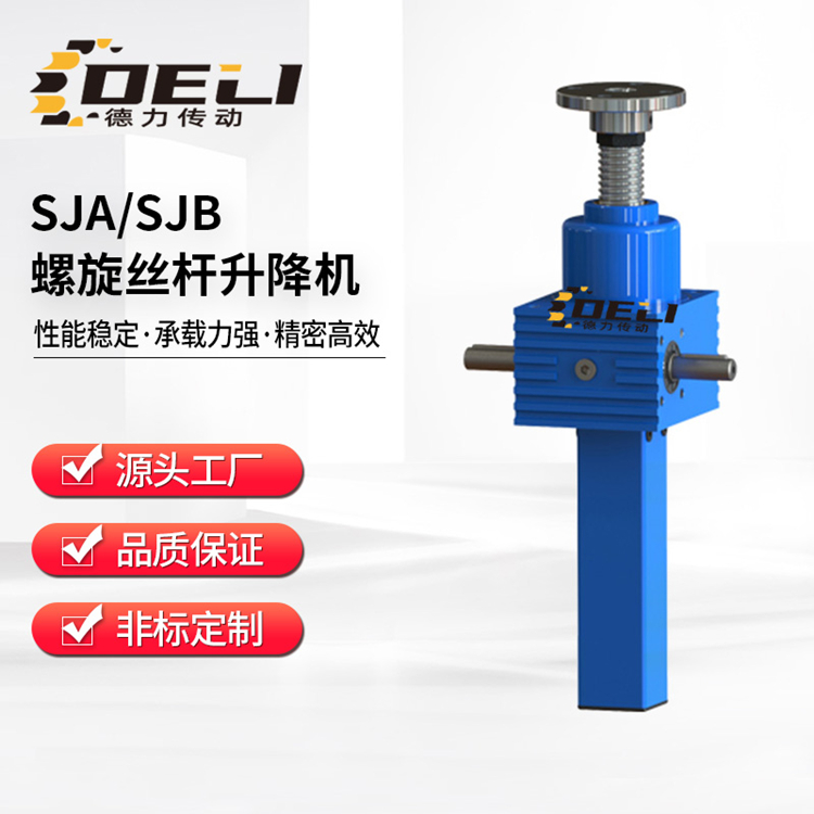 SJ蜗轮丝杆升降机 是一种起重部件,和其他系列丝杆升降机相比具有结构紧凑、体积小、安装方便、输入形式多样、可靠性高、寿命长等许多优点,具有起升下降及借助轴件驱动,反转等多种功能,可单台使用或多台组合使用,该产品可以利用电动机或者其他驱动装置驱动,也可以手动,广泛应用与冶金、机械、水利、医疗、化工等行业。