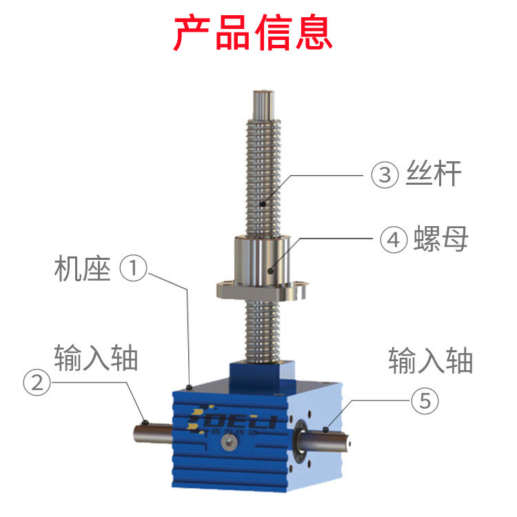 丝杆升降机又称螺旋传动机构,它主要用来将旋转运动变换为直线运动或将直线运动变换为旋转运动。有以传递运动为主的如机床工作台的进给丝杠,也有调整零件之问相对位置的螺旋传动机构等。 丝杆升降机是由蜗轮减速机和丝杆组成,其减速部件是蜗杆传动,利用蜗杆带动蜗轮实现减速。蜗轮相当于升降丝杆的螺母,和升降丝杆相匹配。