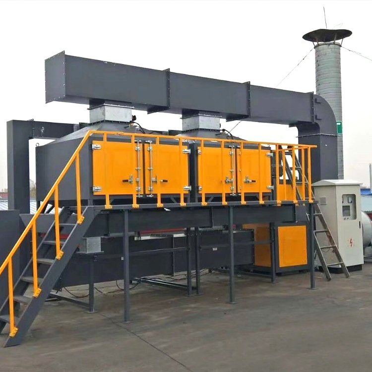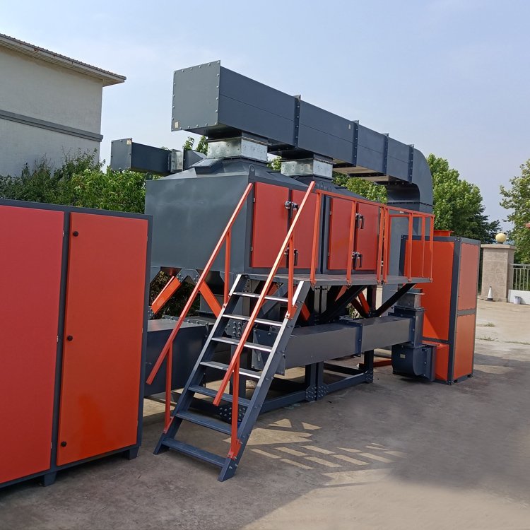 在催化剂的作用下,使有机废气中的碳氢化合物在温度较低的条件下迅速氧化成水和二氧化碳,达到治理的目的。催化燃烧过程是在催化燃烧装置中进行的。有机废气先通过热交换器预热到200~400℃,再进入燃烧室,通过催化剂床时,碳氢化合物的分子和混合气体中的氧分子分别被吸附在催化剂的表面而活化。由于表面吸附降低了反应的活化能,碳氢化合物与氧分子在较低的温度下迅速氧化,产生二氧化碳和水。