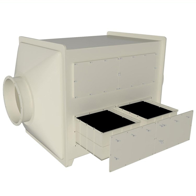 利用活性炭吸附作用除去异味,从而达到净化空气的效果。活性炭箱主要是吸附器,内含穿孔板、活性炭