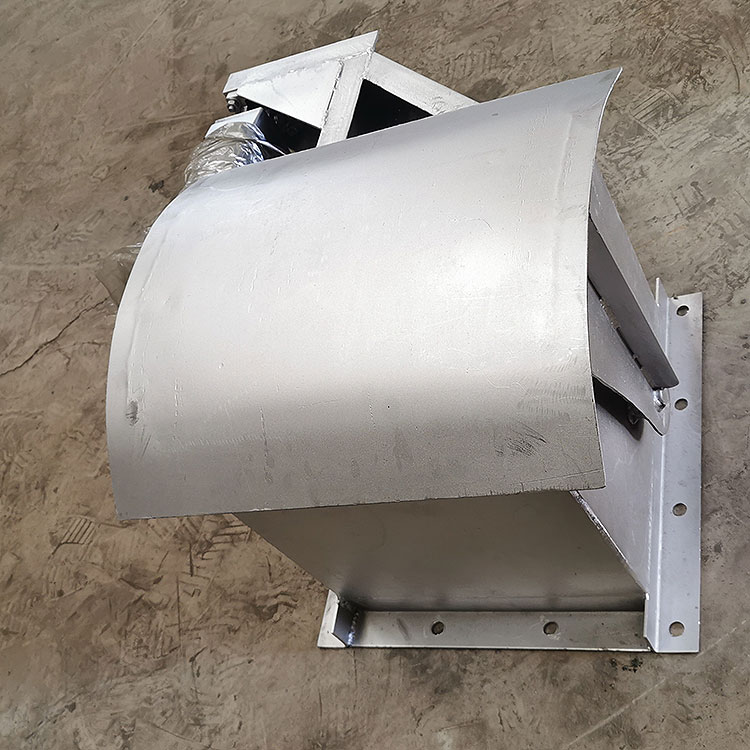 鄂式闸阀由本体、扇形闸板、轴、齿轮、密封件、执行机构等部件构成。手动或执行机构推 动摇杆,使齿轮带动扇形闸板沿轴心旋转,使两个扇形闸板向两边开启,物料随即下落,待接料装置满载后,再由执行机构带动摇杆,使扇形闸板复位,关闭截断下落的物料。