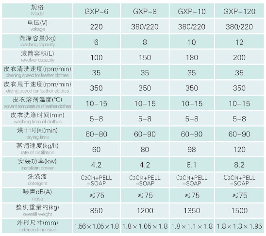 全自动干洗机技术参数