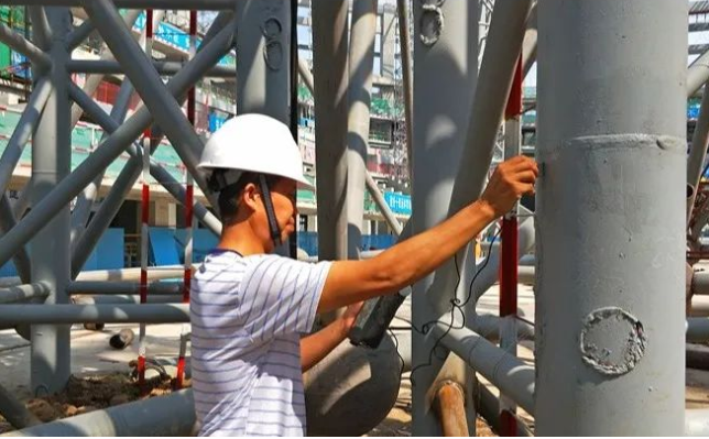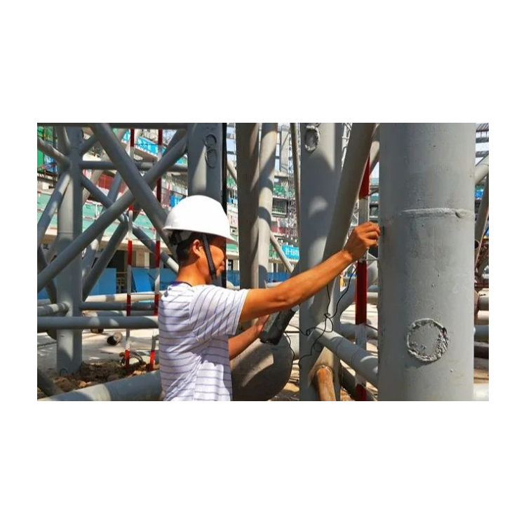 4、抽取一定数量的钢结构预制构件,按照相关规范标准选用超声波或磁粉探伤作焊接检测,检测评定是不是存在焊瘤、弧坑裂痕、电弧擦破等缺陷。