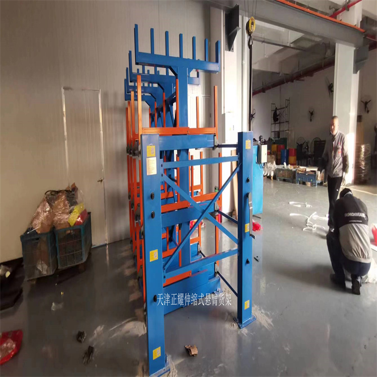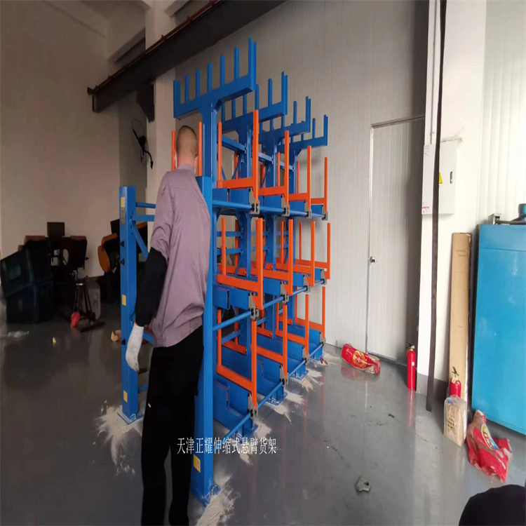 天津市正耀机械有限公司发布的车间里钢管存放架 伸缩式悬臂货架投入使用 圆钢放置架图集库