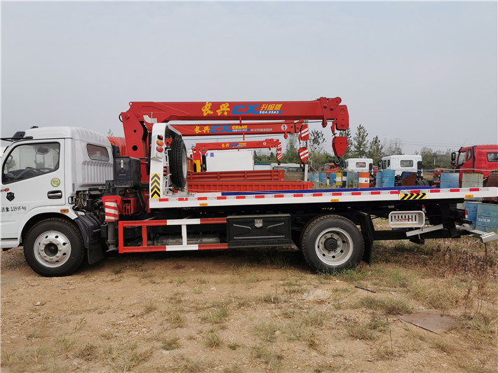免购置税车型(不交交购置税),零首付车型(分期按揭零首付)东风凯普特清障带吊,4400轴距,黄牌平板带吊,一拖二清障车带吊机,带空调,中控锁,电动门窗,板长5.6米,配长兴4吨4节臂吊机,进口液压件,海战力油缸。