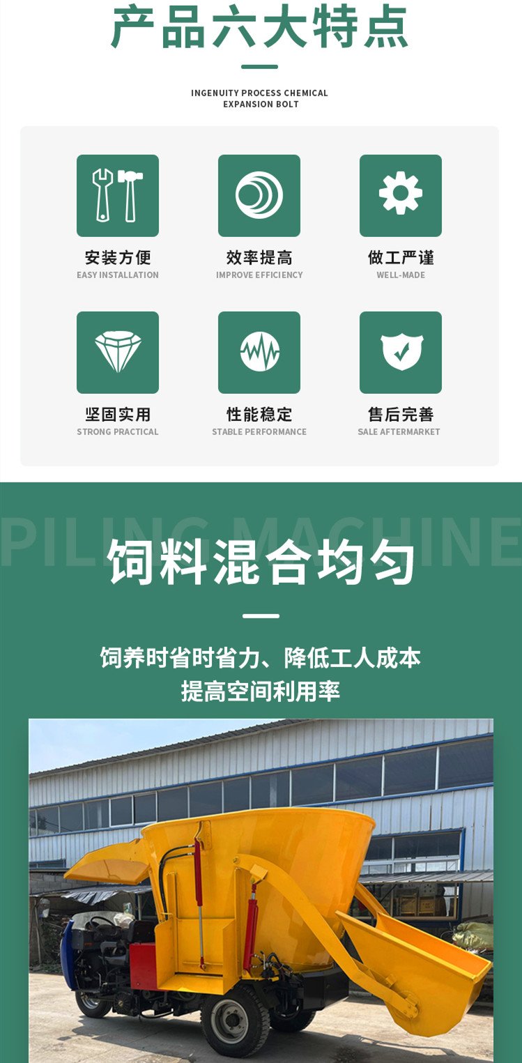 优点就是操作简单,方便,缺点就是方向转动没有液压装置,需要人力控制,并且需要喂料人员跟车走动。优点就是机动灵活,正退操作人员都可以面向前方,方向控制性较好。缺点弱水目前还没发现的哟。优点就是它跟我们平时家庭用的电三轮差不多,正常人群都可以驾驶。
