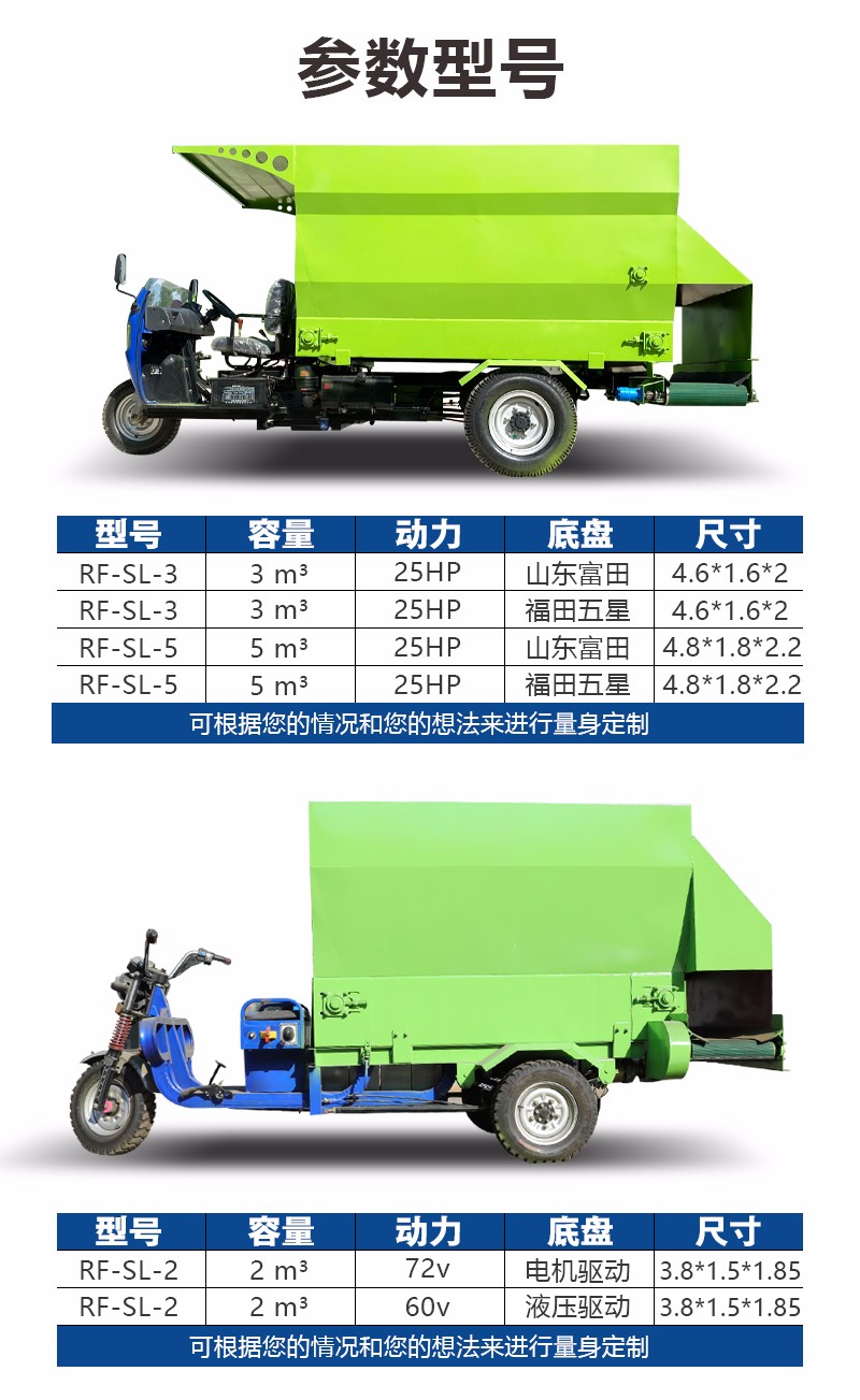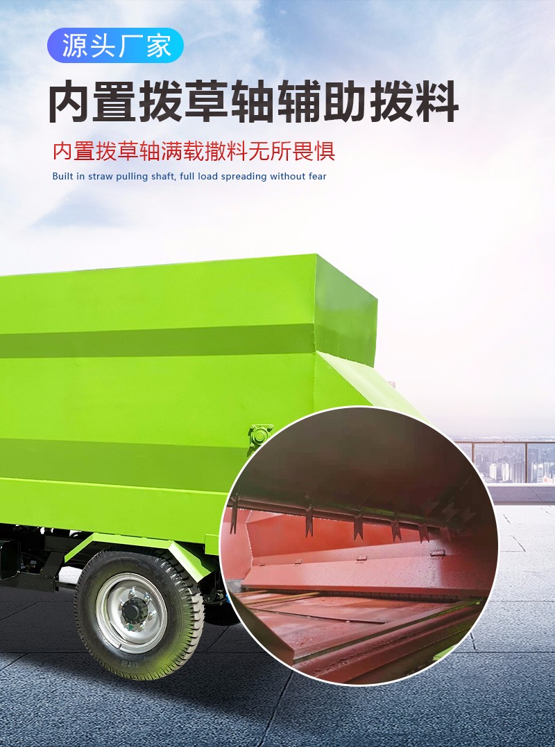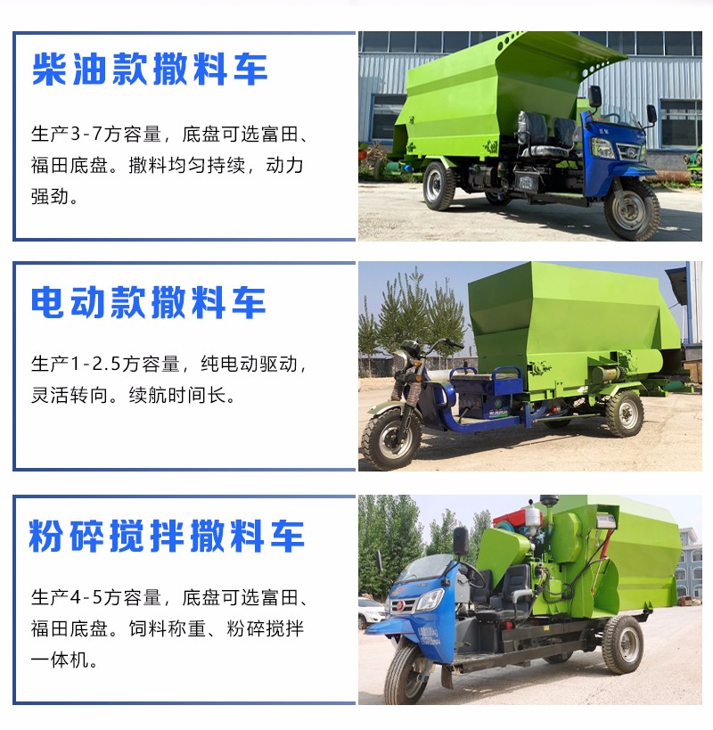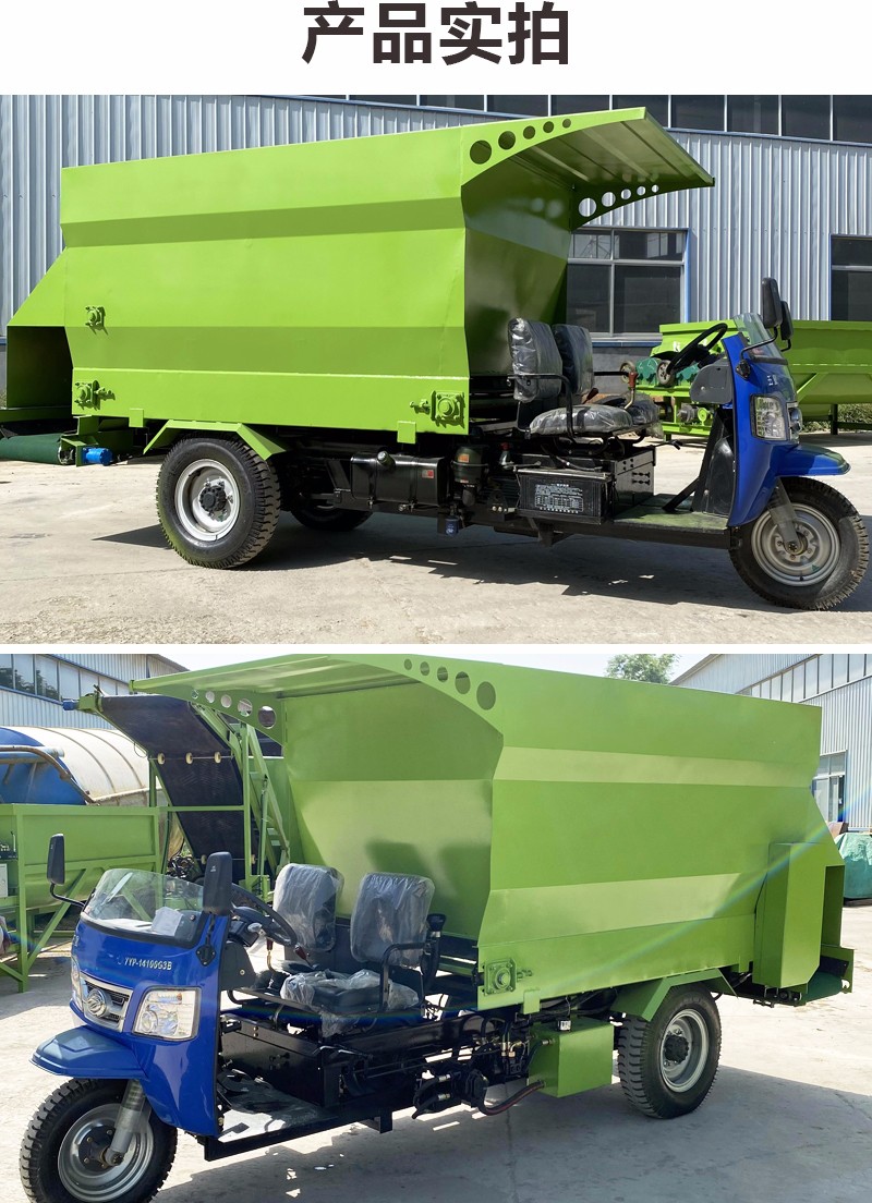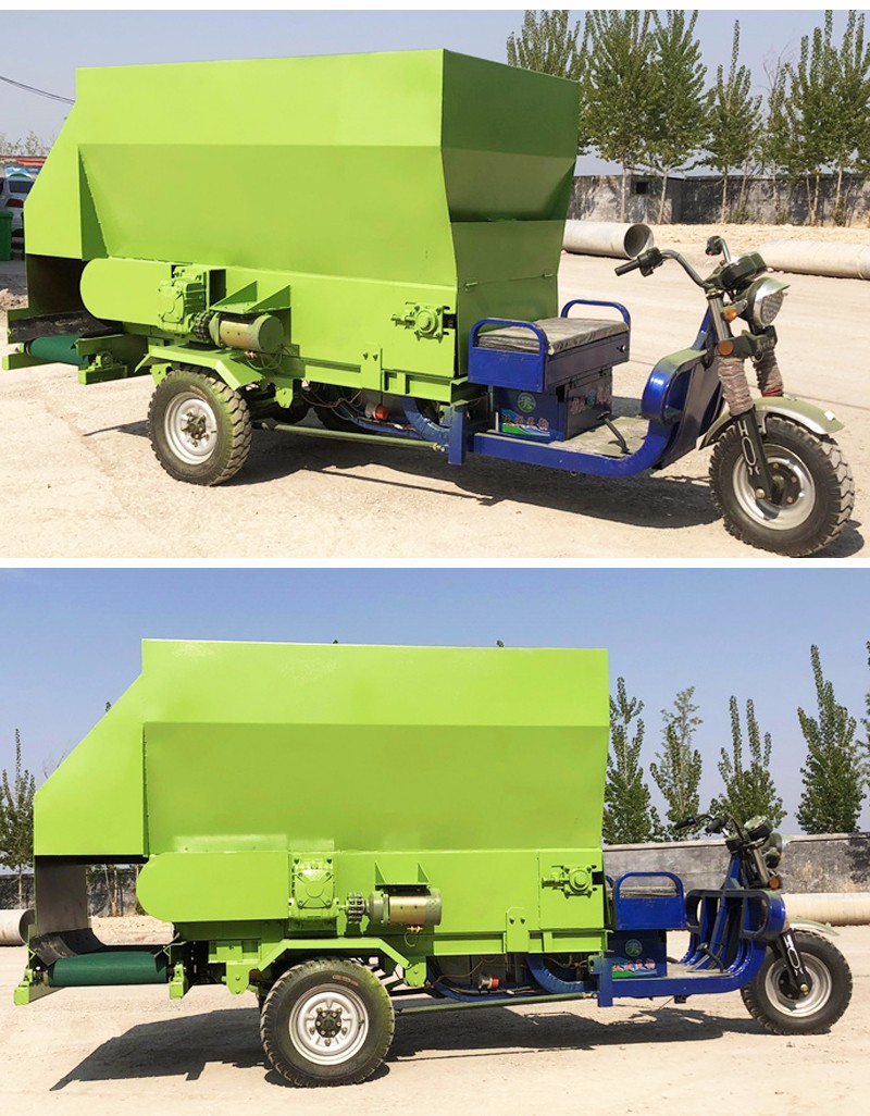 曲阜市润华机械制造有限公司发布的电三轮自动撒草车 3立方螺旋喂草机 双出料口饲喂车润华图集库